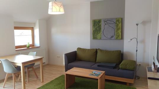 Die Wohnung hat ca. 50 m² in Richtung Südosten mit einem großen Balkon (12 m²). Sie besteht aus einem Schlafraum mit Doppelbett und Flat-TV; einer Wohnküche mit Couch und Essplatz, Spülmaschine, Ceranfeld, Backofen, Microwelle, Kühlschrank mit Gefrierfach, Wasserkocher, Kaffeemaschine und Toaster sowie einem Bad mit Dusche, WC, Waschtisch, Kosmetikspiegel, Fön, Handtuchheizkörper, Fußbodenheizung und Außenfenster.