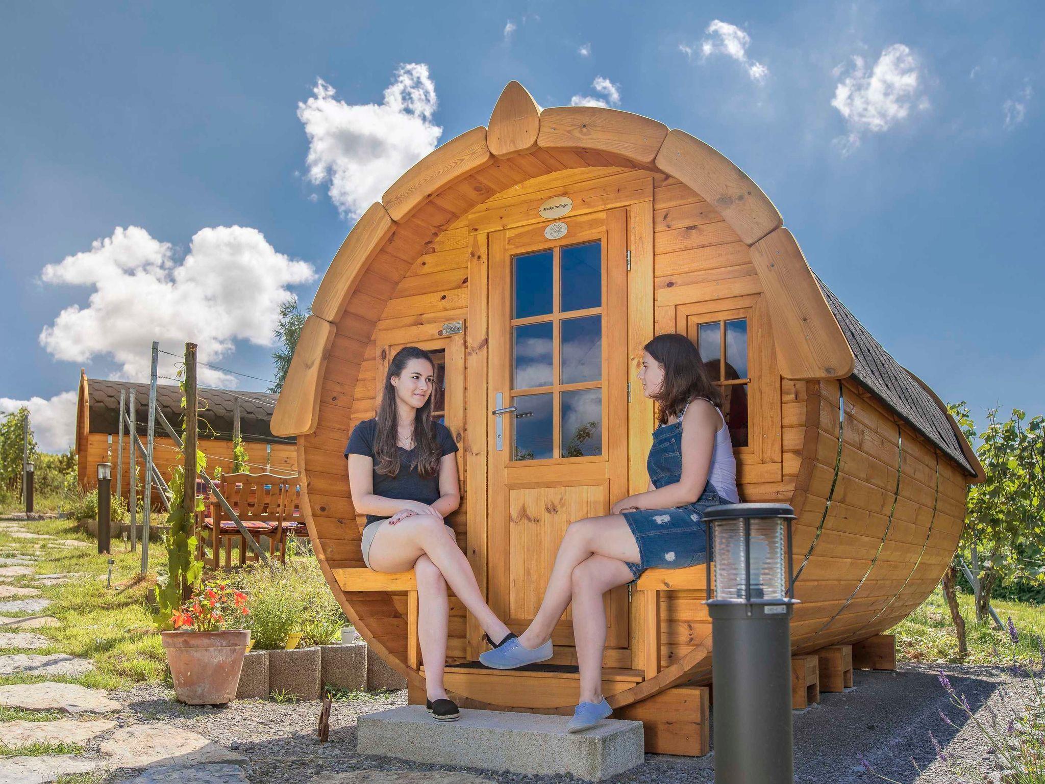 Es gibt insgesamt 3 rustikale Schlaffässer direkt im Weinberg.