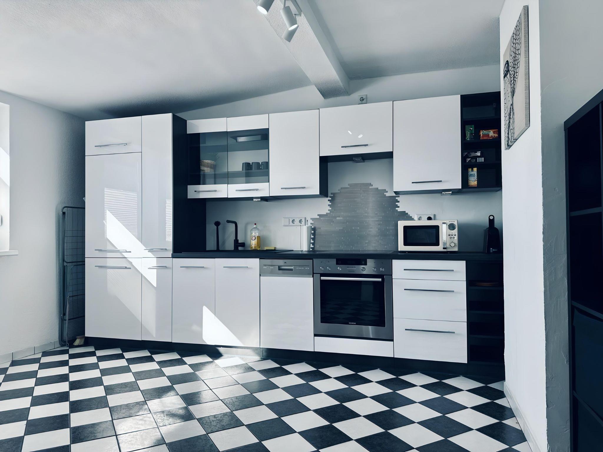 Inside, you will find high-quality, modern furnishings that leave nothing to be desired in terms of comfort. The two cosy bedrooms guarantee a restful night's sleep. The bathroom is equipped with a shower and a bathtub, where you can leave the worries of everyday life behind you. The kitchen is fully equipped with a dishwasher, mini oven, kettle and other amenities that invite you to cook together. The living area has comfortable seating and a fan to provide fresh air. For longer stays, a washing machine and tumble dryer are available for communal use.