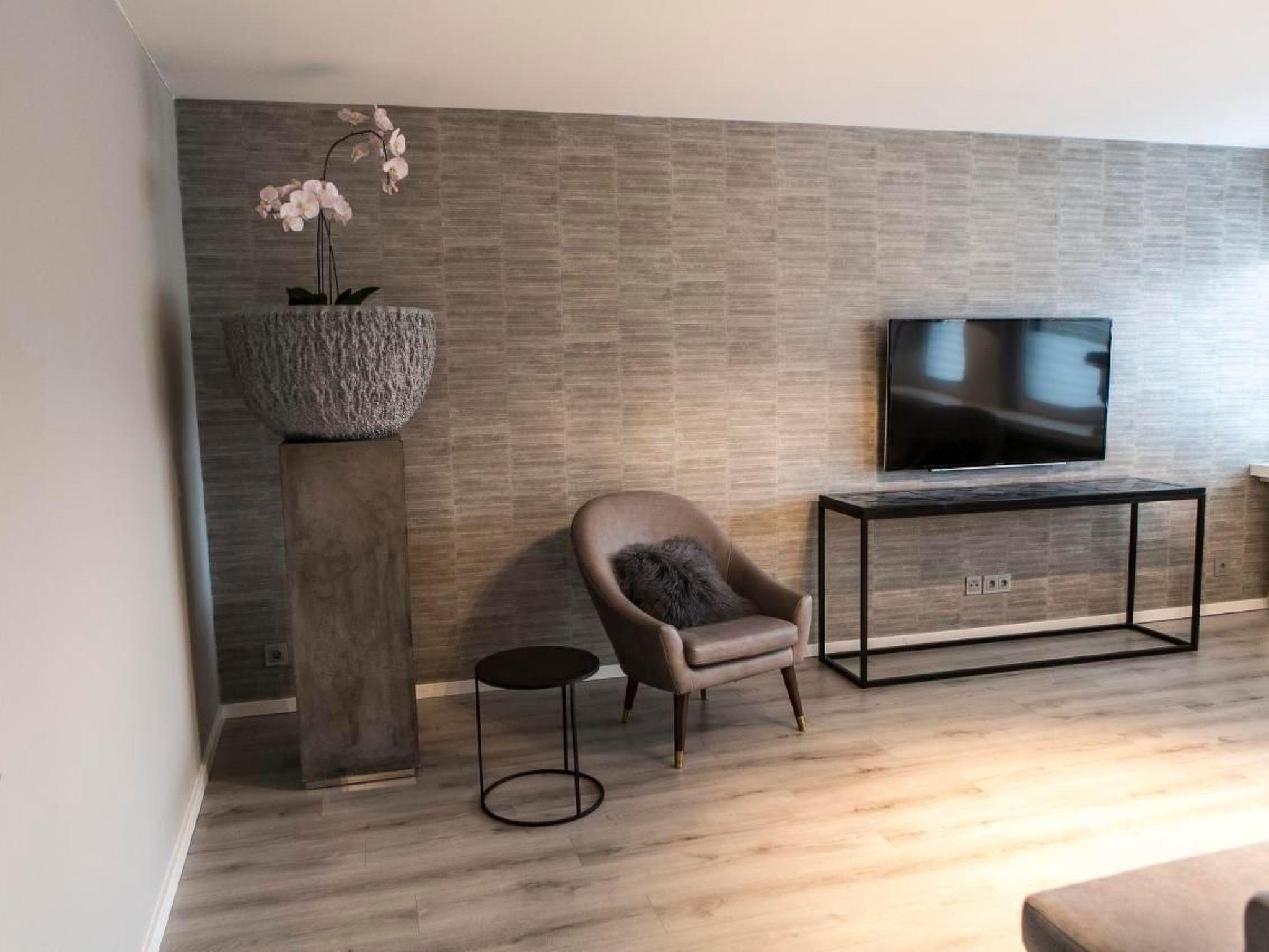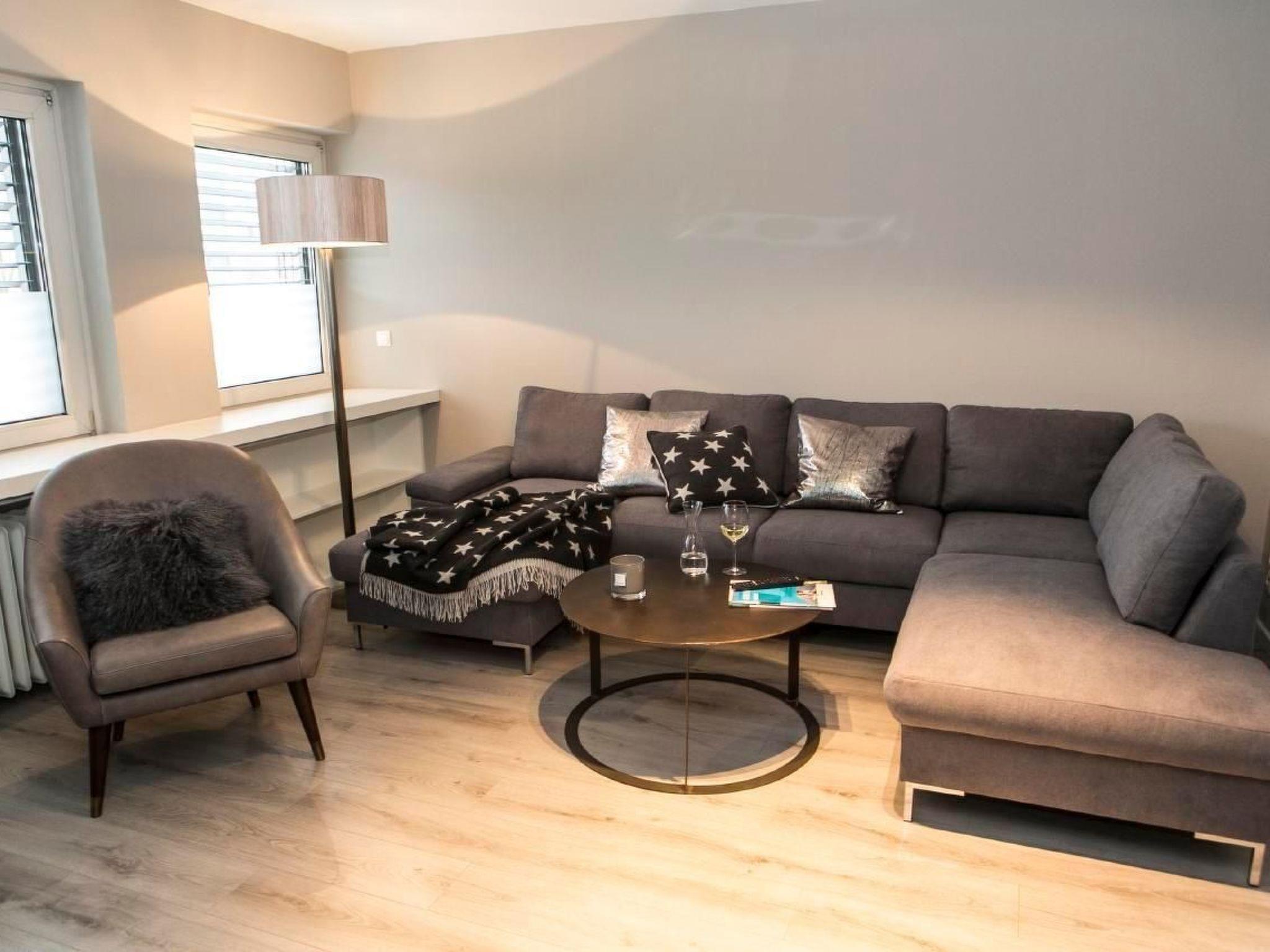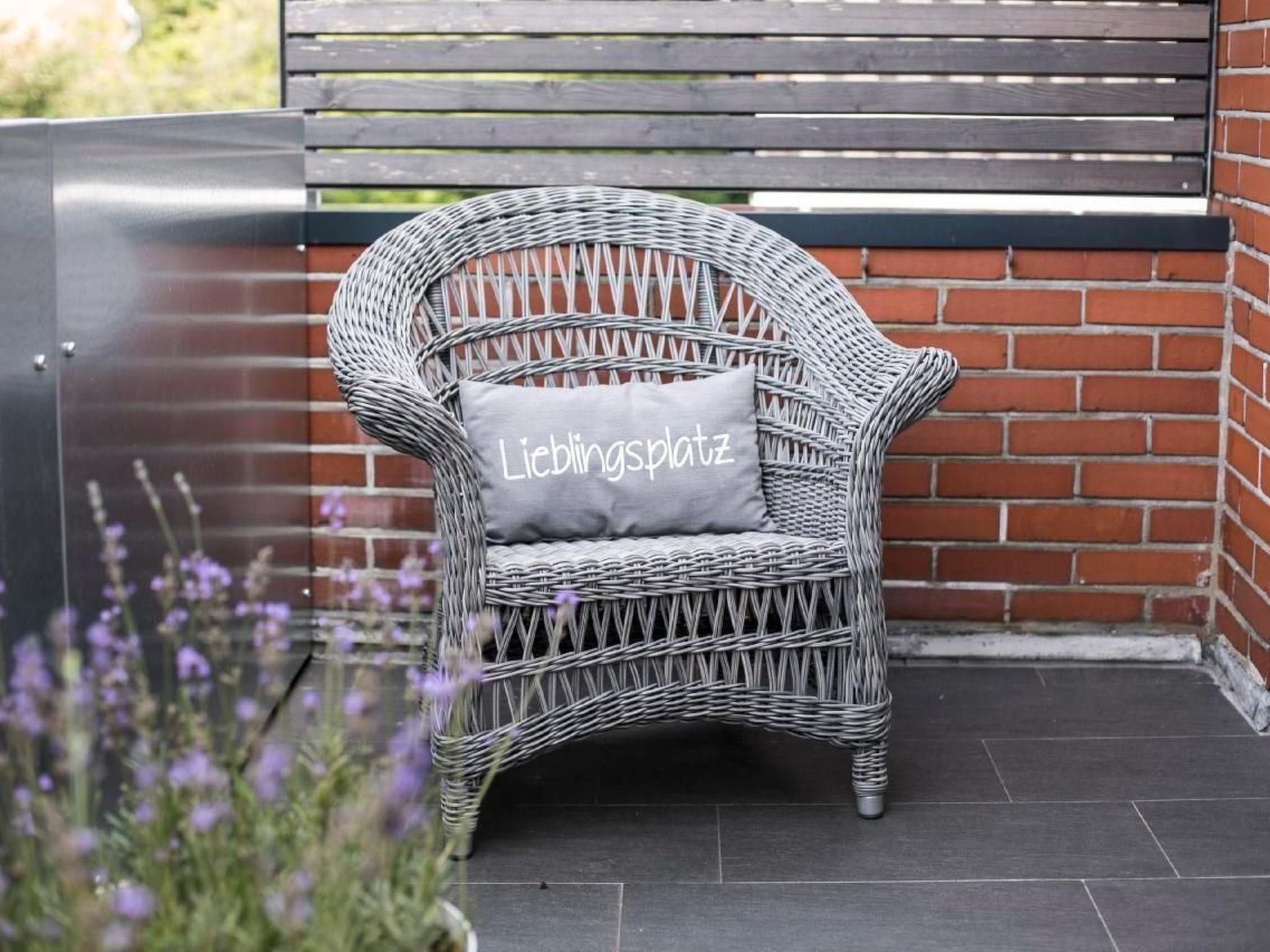 The large balcony with its inviting lounge furniture invites you to spend relaxing hours outdoors. Enjoy a book or a sunny afternoon tea here in peace and quiet. The flat also offers a garage with remote control for your vehicle and a separate bicycle room in the courtyard, making your stay both comfortable and practical.