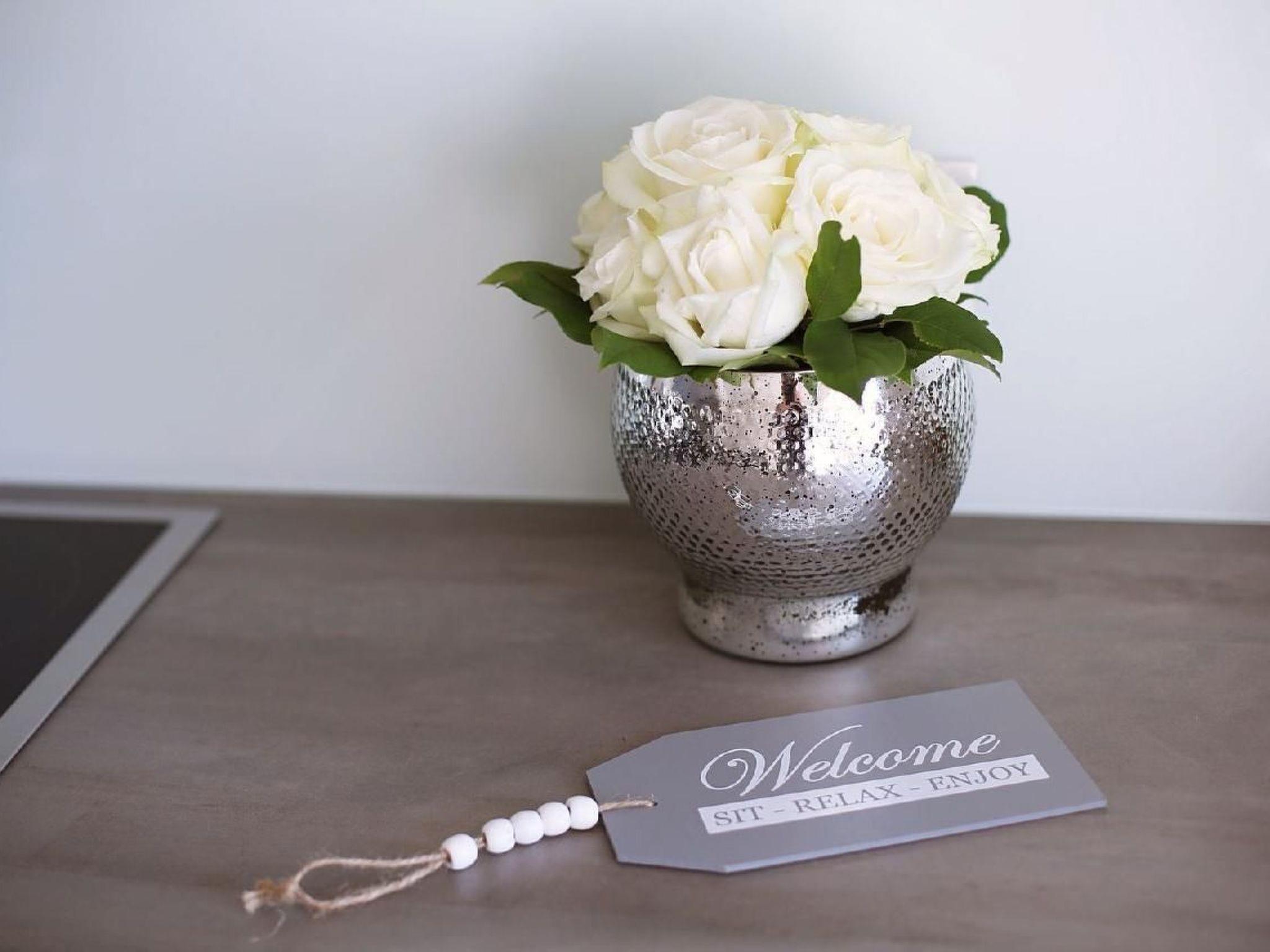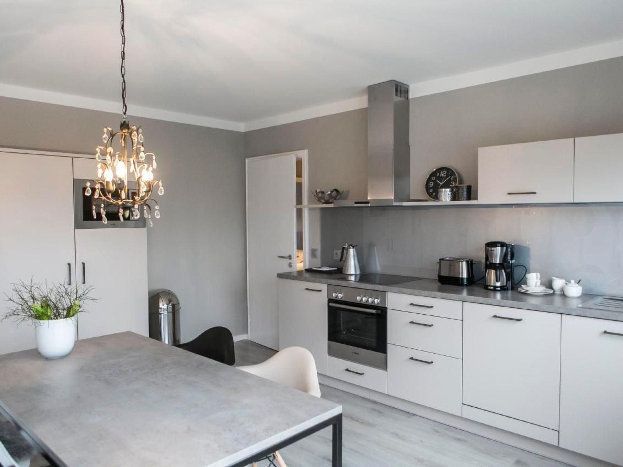 Inside this 85 m² holiday flat on the 1st floor, you will find a spacious hallway with cloakroom and a tastefully furnished living area. Two cosy bedrooms, equipped with a double bed and a single bed, promise peaceful nights. A modern bathroom with an inviting rainforest shower ensures refreshing moments at the beginning or end of an eventful day. The communal area with washing machine adds to the convenience, while the dishwasher provides practical assistance in everyday life.
