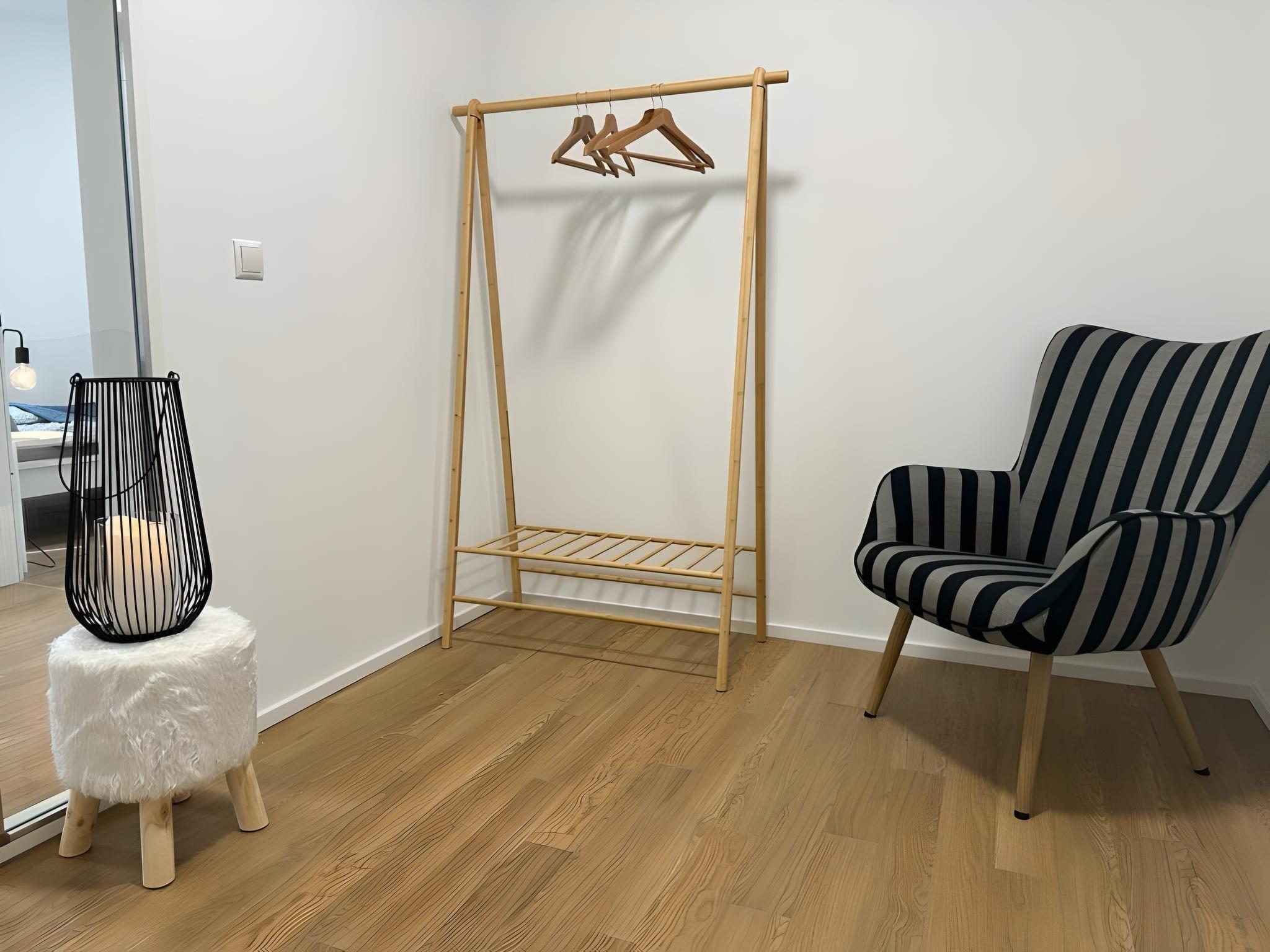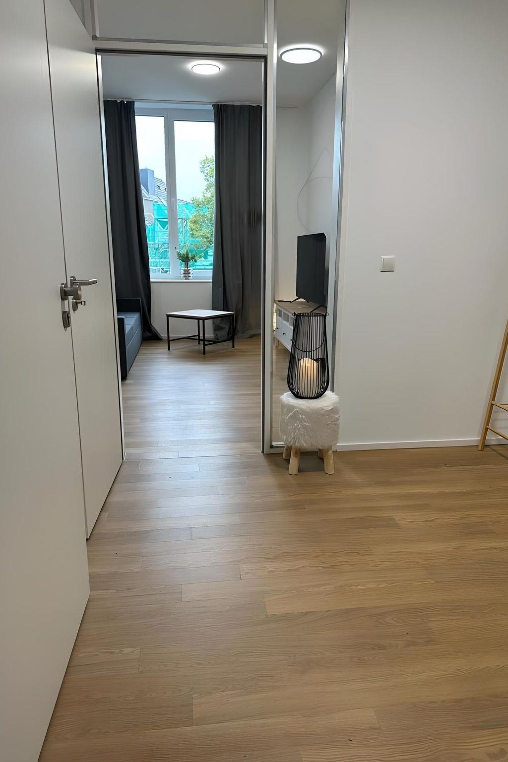 Inside, you will find stylish furnishings that leave nothing to be desired. The fully equipped kitchen with ceramic hob, capsule coffee machine, dishwasher and kettle makes self-catering a pleasure. A washing machine and tumble dryer for communal use also guarantee the comfort of home. The cosy living area is the perfect place to relax after an eventful day, while the modern bathroom with shower offers all the amenities you would expect from a city flat.