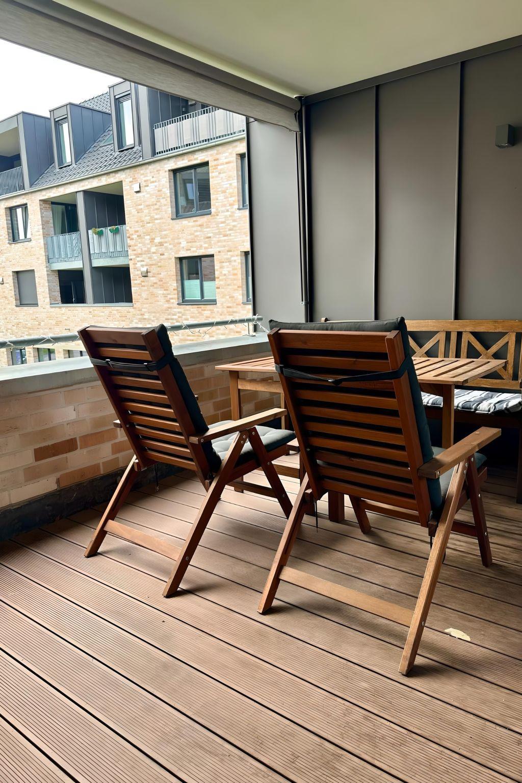 Inside, you'll find a fully equipped kitchen with ceramic hob, capsule coffee machine, dishwasher and kettle - perfect for whipping up your own culinary delights. The flat has a bedroom with blackout windows for a good night's sleep and a bathroom with shower. For added convenience, there is a washing machine and tumble dryer for your sole use, combined with the cosy warmth of partial underfloor heating. Here you will find everything you need for a carefree stay.