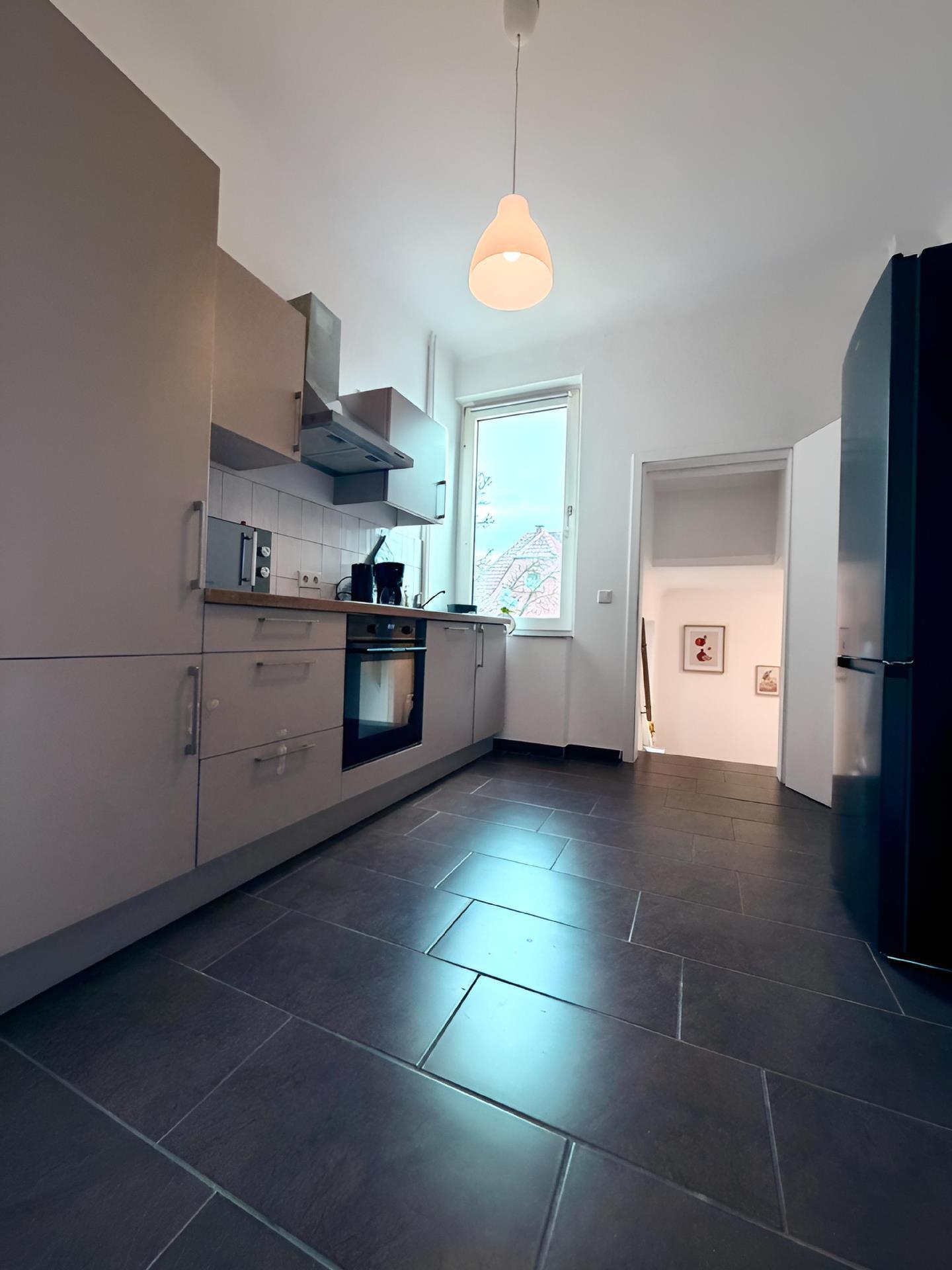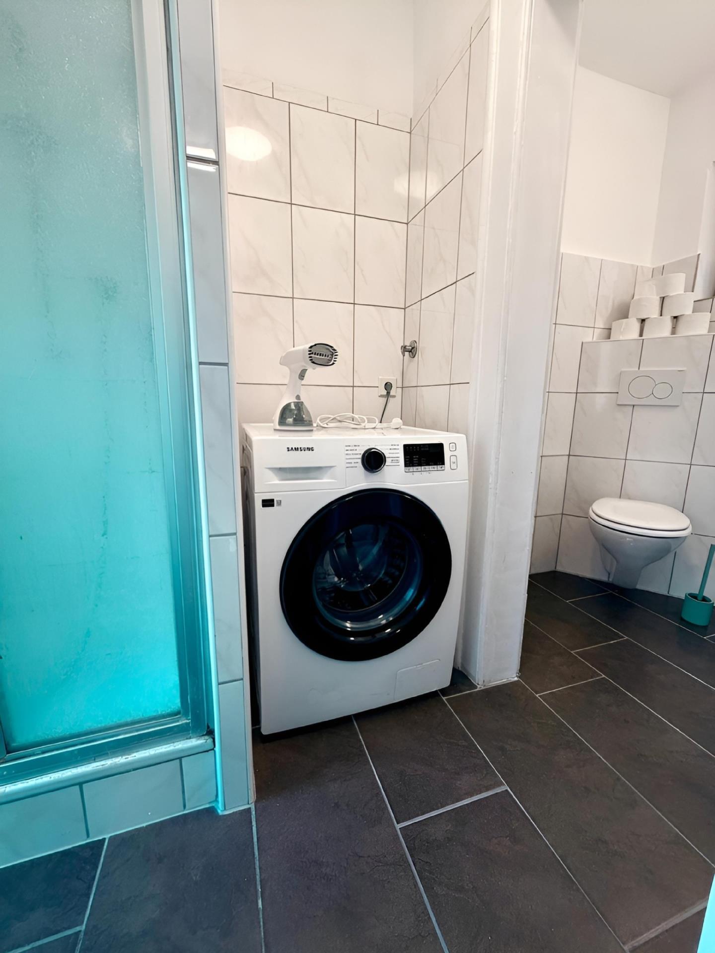 Inside you will find a neat and modern interior. The flat has 2 bedrooms with comfortable single beds so that every guest can retire after an eventful day. The large living/dining area invites you to linger together, while the kitchen with ceramic hob, filter coffee machine, kettle, dishwasher and other kitchen appliances fulfils all expectations for self-catering. A modern bathroom with shower and a washing machine for sole use round off the interior perfectly.