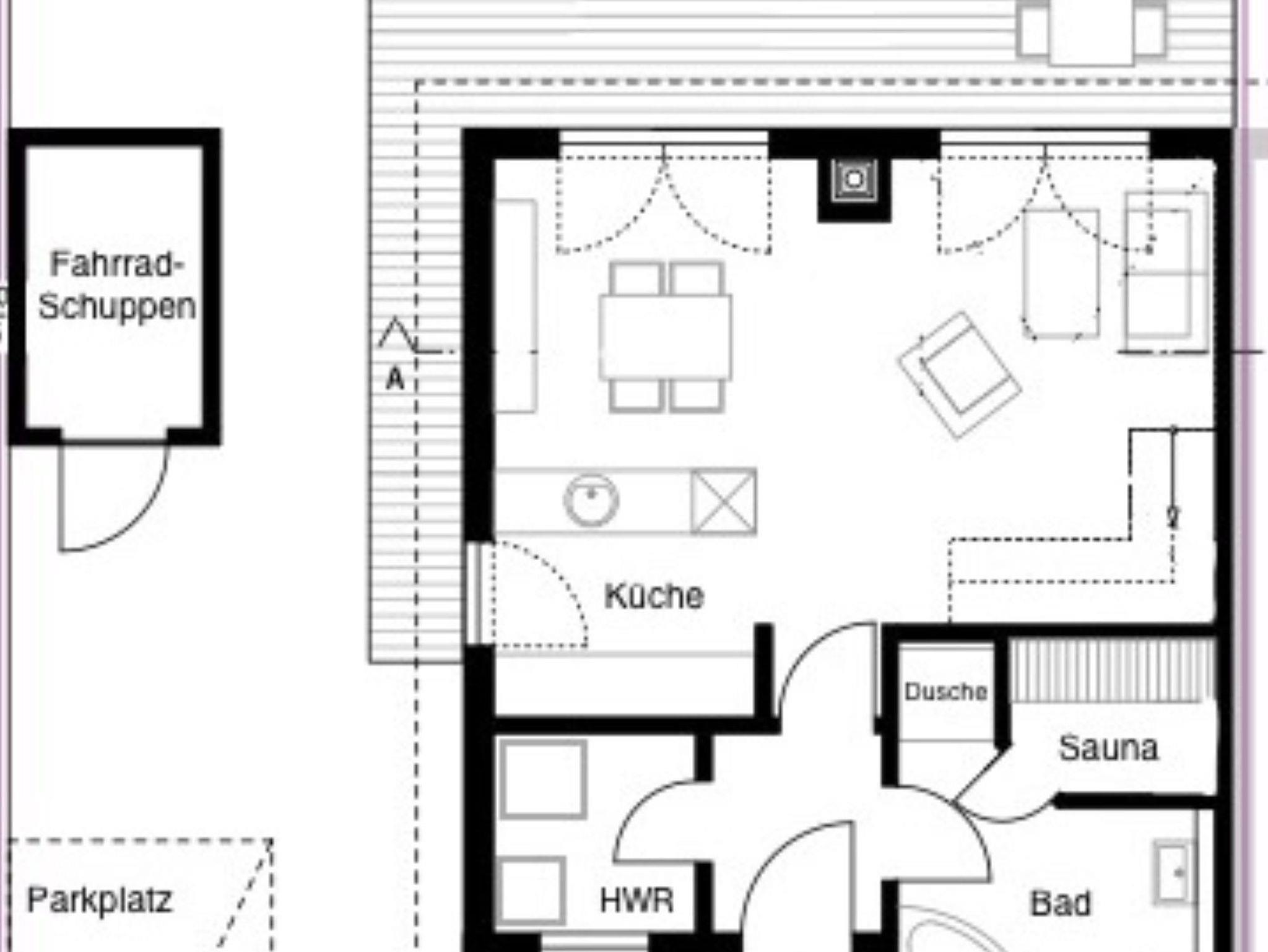 2 Schlafräume mit Doppelbetten, Wohnküche, Backofen, Bügelbrett, Geschirrspüler, Wasserkocher, Kaffeemaschine, Kühlschrank, Mikrowelle, Toaster, Waschtrockner, Musikanlage mit Radio, CD-Player und Bluetooth, Essecke, Fernseher, Kaminofen.
