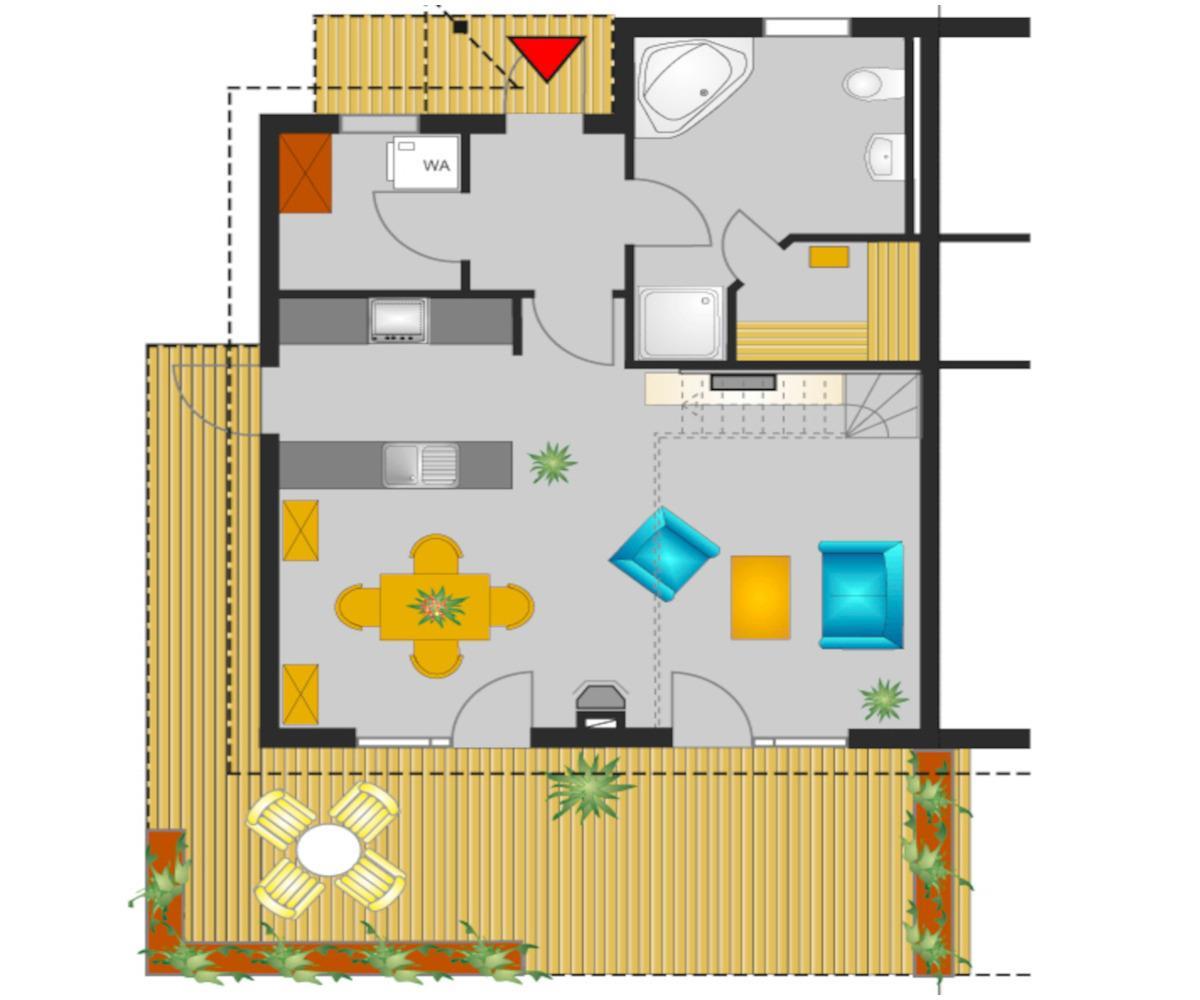 Durch die offene Küche mit dem angrenzenden lichtdurchfluteten Esszimmer ist das Wohlfühlen im Seeschlößchen vom ersten Tag an garantiert. Die Küche ist mit einem Geschirrspüler, Mikrowelle, wie auch Wasserkocher, Kaffeemaschine und Toaster, ausgestattet. Das helle Wohnzimmer mit Blick in den offenen Giebel und ein Kaminofen sorgen für ein hohes Maß an Gemütlichkeit. Zur weiteren Ausstattung gehören eine Stereoanlage und ein Flachbildfernseher.