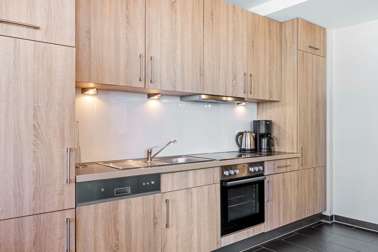 Das moderne Nichtraucher-Apartment verfügt über kostenfreies WLAN und eine großzügig konzipierte und voll ausgestattete offene Küche mit Geschirrspüler, einer Kaffee- bzw. Espressomaschine, Toaster, Mikrowelle, Wasserkocher, Tiefkühlfach und Backofen. Im Schlafzimmer stehen euch ein Doppelbett (1,80 x 2,00 m), im Wohnbereich ein Smart-TV (40 Zoll), ein Radio, ein DVD-Player und ein Elektrokamin zur Verfügung. Ein Kinderbett kann gegen Entgelt aufgestellt werden und auf Wunsch könnt ihr einen Hochstuhl hinzubuchen.