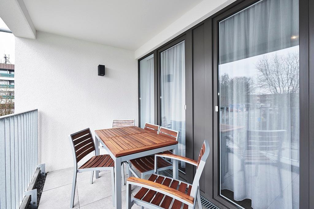 Die 61 m² große 3-Zimmer Ferienwohnung ist für bis zu 5 Personen geeignet. Besonders hervorzuheben sind die beiden überdachten Balkone mit Relaxliegestühlen und Beistelltisch in sonniger West-Lage. Hier lässt es sich den ganzen Tag über herrlich entspannen.