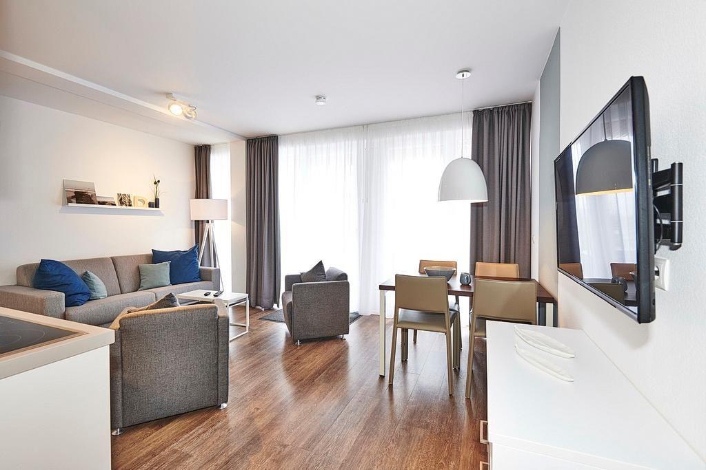Das geschmackvoll eingerichtete Nichtraucher-Apartment verfügt über kostenfreies WLAN. Der Wohnbereich bietet eine voll ausgestattete offene Küchenzeile mit Geschirrspüler, Gefrierfach, Kaffeemaschine, Toaster, Wasserkocher und Mikrowelle mit Backfunktion sowie einen großen Flatscreen-TV und ein Radio. Das Apartment verfügt über einen Esstisch für 5 Personen und einen behaglichen Sitzbereich. Zwei separate Schlafzimmer mit jeweils einem Doppelbett stehen euch zur Verfügung. Eines davon verfügt zudem über einen eigenen Flatscreen-TV. Im stilvollen Badezimmer befinden sich eine große begehbare Dusche sowie ein Waschtisch mit Föhn und Kosmetikspiegel. Nach einem erlebnisreichen Urlaubstag entspannt ihr auf dem überdachten und mit Gartenmöbeln für 5 Personen ausgestatteten Balkon. Der Balkon ist vom Wohnbereich und vom Hauptschlafzimmer aus zugänglich.