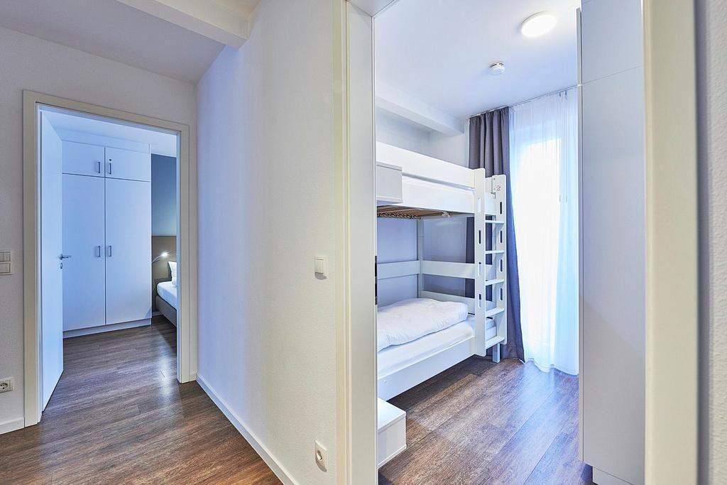 Das geschmackvoll eingerichtete Nichtraucher-Apartment verfügt über kostenfreies WLAN. Der Wohnbereich mit Schlafcouch, bietet eine voll ausgestattete offene Küchenzeile mit Geschirrspüler, Gefrierfach, Kaffeemaschine, Toaster, Wasserkocher und Mikrowelle mit Backfunktion sowie einen großen Flatscreen-TV und ein Radio. Das Apartment verfügt über einen Esstisch für 4 Personen und einen behaglichen Sitzbereich. Zwei separate Schlafzimmer stehen euch zur Verfügung. Eines davon verfügt über ein Doppelbett und einen eigenen Flatscreen-TV, ein weiteres über ein Etagenbett. Im stilvollen Badezimmer befinden sich eine große begehbare Dusche sowie ein Waschtisch mit Föhn und Kosmetikspiegel. Nach einem erlebnisreichen Urlaubstag lässt es sich auf dem überdachten und mit Gartenmöbeln ausgestatteten Balkon wunderbar entspannen.
