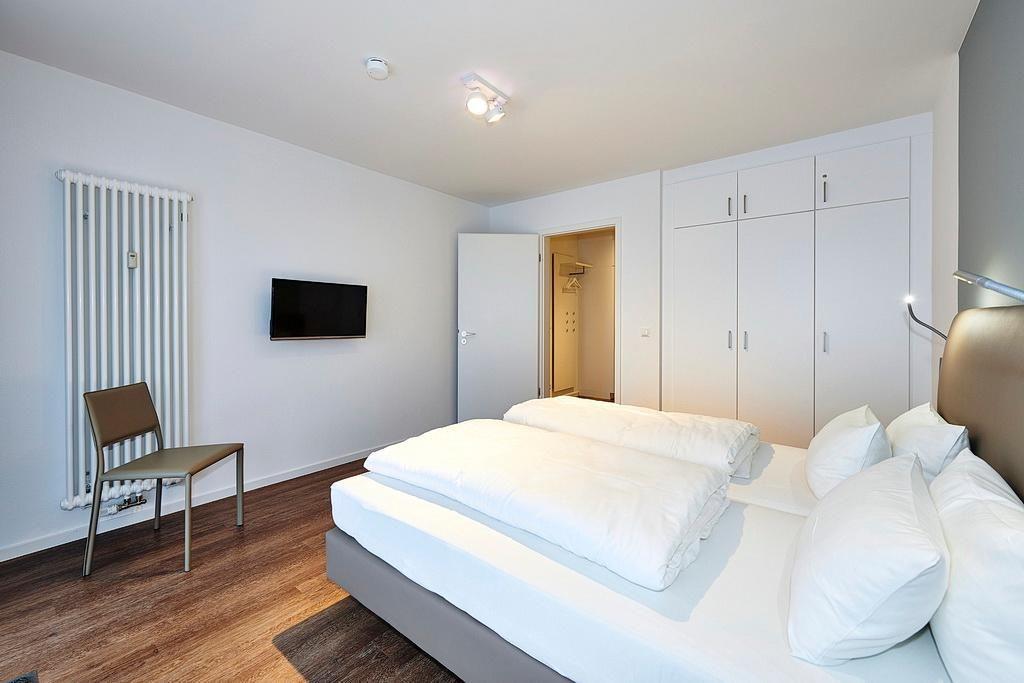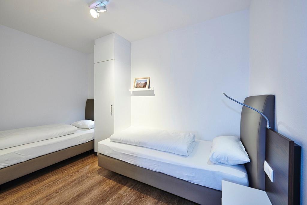 Das moderne und geschmackvoll eingerichtete Nichtraucher-Apartment verfügt über kostenfreies WLAN. Der Wohnbereich mit Schlafcouch bietet eine voll ausgestattete offene Küchenzeile mit Geschirrspüler, Gefrierfach, Kaffeemaschine, Toaster, Wasserkocher und Mikrowelle mit Backfunktion sowie einen großen Flatscreen-TV und ein Radio. Das Apartment verfügt über einen Esstisch für 5 Personen und einen behaglichen Sitzbereich. Zwei separate Schlafzimmer mit einem Doppelbett bzw. zwei Einzelbetten (Alkoven) stehen euch zur Verfügung. Eines davon verfügt zudem über einen eigenen Flatscreen-TV. Ein Kinderbett kann gegen Entgelt aufgestellt werden. Im stilvollen Badezimmer befinden sich eine große begehbare Dusche sowie ein Waschtisch mit Föhn und Kosmetikspiegel. Nach einem erlebnisreichen Urlaubstag lässt es sich auf den beiden überdachten und mit Gartenmöbeln und Sonnenliege für 5 Personen ausgestatteten Balkonen wunderbar entspannen. Die Balkone sind vom Wohnbereich bzw. vom Hauptschlafzimmer aus zugänglich.