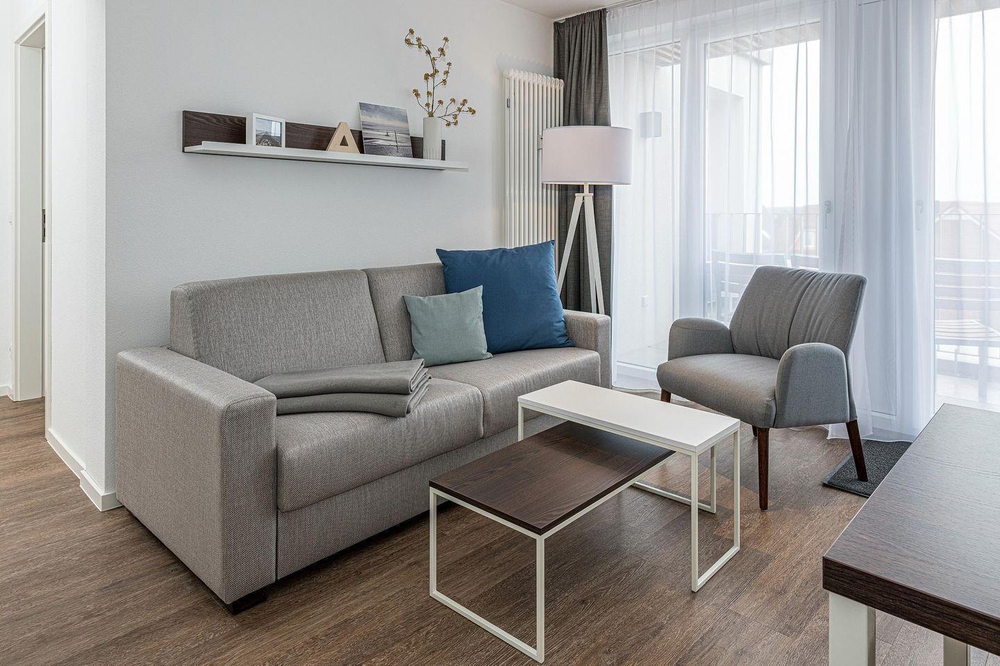 Die 59 m² große 3-Zimmer Ferienwohnung ist für bis zu 5 Personen geeignet. Besonders hervorzuheben sind die zwei großzügigen und überdachten Balkone in sonniger Süd-West-Lage. Hier lässt sich den ganzen Tag das wohltuende Meeresklima des Nordseeheilbades genießen. Die Wohnung verfügt über elektrische Außenrolladen zur Verdunklung und für ein angenehmes Raumklima.