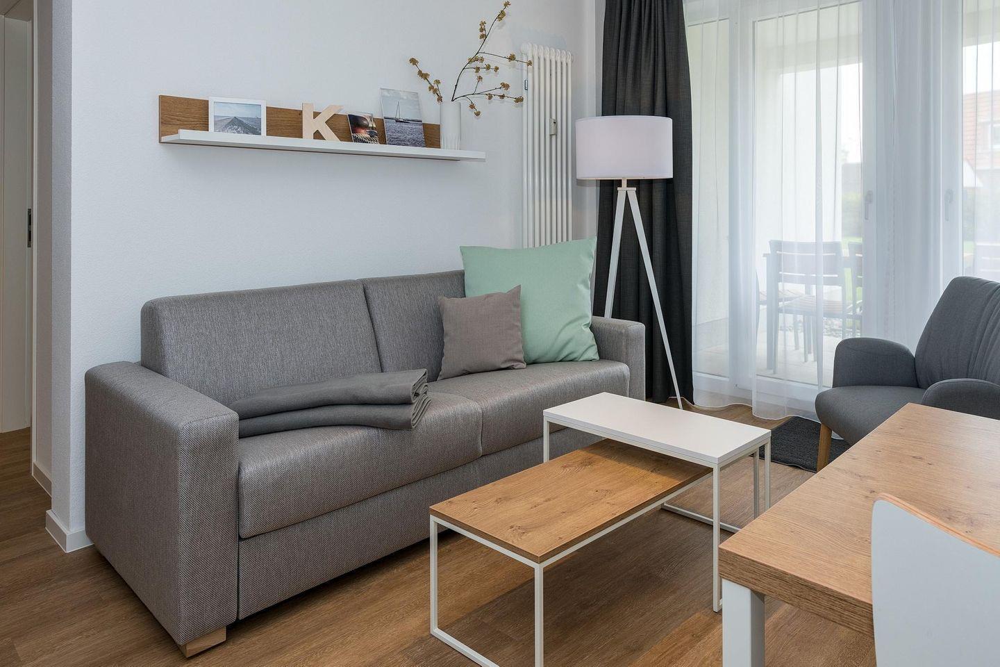 Die 62 m² große 3-Zimmer Ferienwohnung ist für bis zu 5 Personen geeignet. Besonders hervorzuheben sind die zwei großzügigen und überdachten Terrassen in sonniger Süd-West-Lage mit eigener Grünfläche. Hier lässt sich den ganzen Tag das wohltuende Meeresklima des Nordseeheilbades genießen.