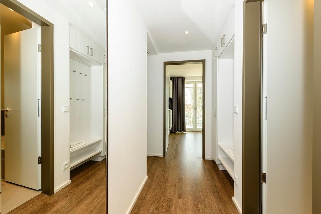 Das barrierearme Nichtraucher-Apartment verfügt über kostenfreies WLAN. Der Wohnbereich mit Schlafcouch bietet eine voll ausgestattete offene Küchenzeile mit Geschirrspüler, Gefrierfach, Kaffeemaschine, Toaster, Wasserkocher und Mikrowelle mit Grillfunktion sowie einen großen Flatscreen-TV und Radio. Das Apartment verfügt über einen Esstisch und einen behaglichen Sitzbereich. Im separaten Schlafzimmer befindet sich ein Doppelbett und ein zweiter Flatscreen-TV, in einem weiteren Schlafbereich mit Schiebetür stehen euch zwei Einzelbetten zur Verfügung. Ein Kinderbett kann gegen Entgelt aufgestellt werden. Im stilvollen Badezimmer befinden sich eine große begehbare Dusche, eine Badewanne sowie ein Waschtisch mit Föhn und Kosmetikspiegel. Nach einem erholsamen Urlaubstag lässt es sich auf dem sonnigen und geschützten Balkon herrlich entspannen.