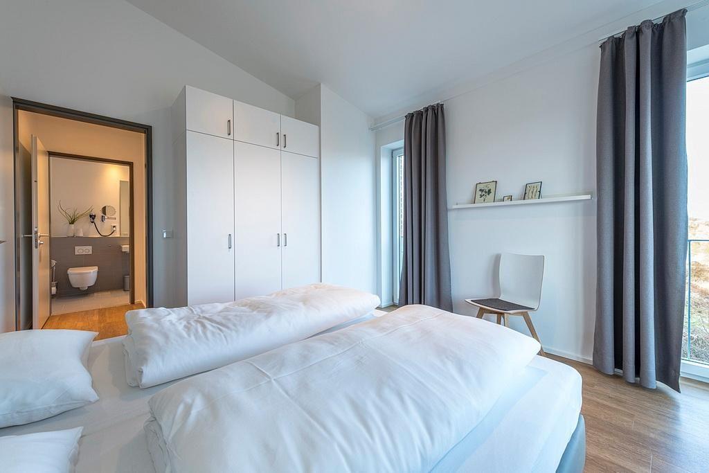 Das hochwertige Nichtraucher-Apartment verfügt über kostenfreies WLAN. Der Wohnbereich bietet, neben einer Schlafcouch, eine voll ausgestattete offene Küche mit Geschirrspüler, Gefrierfach, Kaffeemaschine, Toaster, Wasserkocher und Mikrowelle mit Grillfunktion sowie einen großen Flatscreen-TV und Radio. Das Apartment verfügt über einen Esstisch für 6 Personen und einen behaglichen Sitzbereich. Drei separate Schlafzimmer stehen euch zur Verfügung. Zwei davon jeweils mit einem Doppelbett, eins zudem mit einem eigenem Flatscreen-TV und eins verfügt über einen direkten Zugang zum Balkon. Das dritte Schlafzimmer mit Etagenbett liegt unmittelbar neben einem der Badezimmer. Ein Kinderbett kann gegen Entgelt aufgestellt werden. In den beiden stilvollen Badezimmern befinden sich eine große begehbare Dusche bzw. eine Badewanne sowie ein Waschtisch mit Föhn und Kosmetikspiegel. Auf dem geschützten Balkon, nach Nord-West gelegen, lässt sich auch in großer Runde gemütlich beisammensitzen.