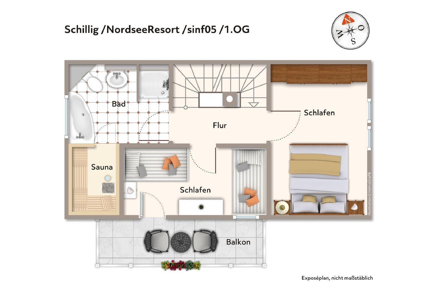 Im Obergeschoss stehen euch ein stilvolles Tageslicht-Badezimmer mit Badewanne, Fußbodenheizung, Regendusche, WC, Waschtisch, Kosmetikspiegel und Föhn sowie ein separates Gäste-WC zur Verfügung. Ein Highlight ist die eigene Sauna im Badezimmer des Hauses. Auf dieser Etage befindet sich ein weiterer Balkon, der sich besonders nach einem Saunagang anbietet, um Frischluft und Meeresklima zu genießen.