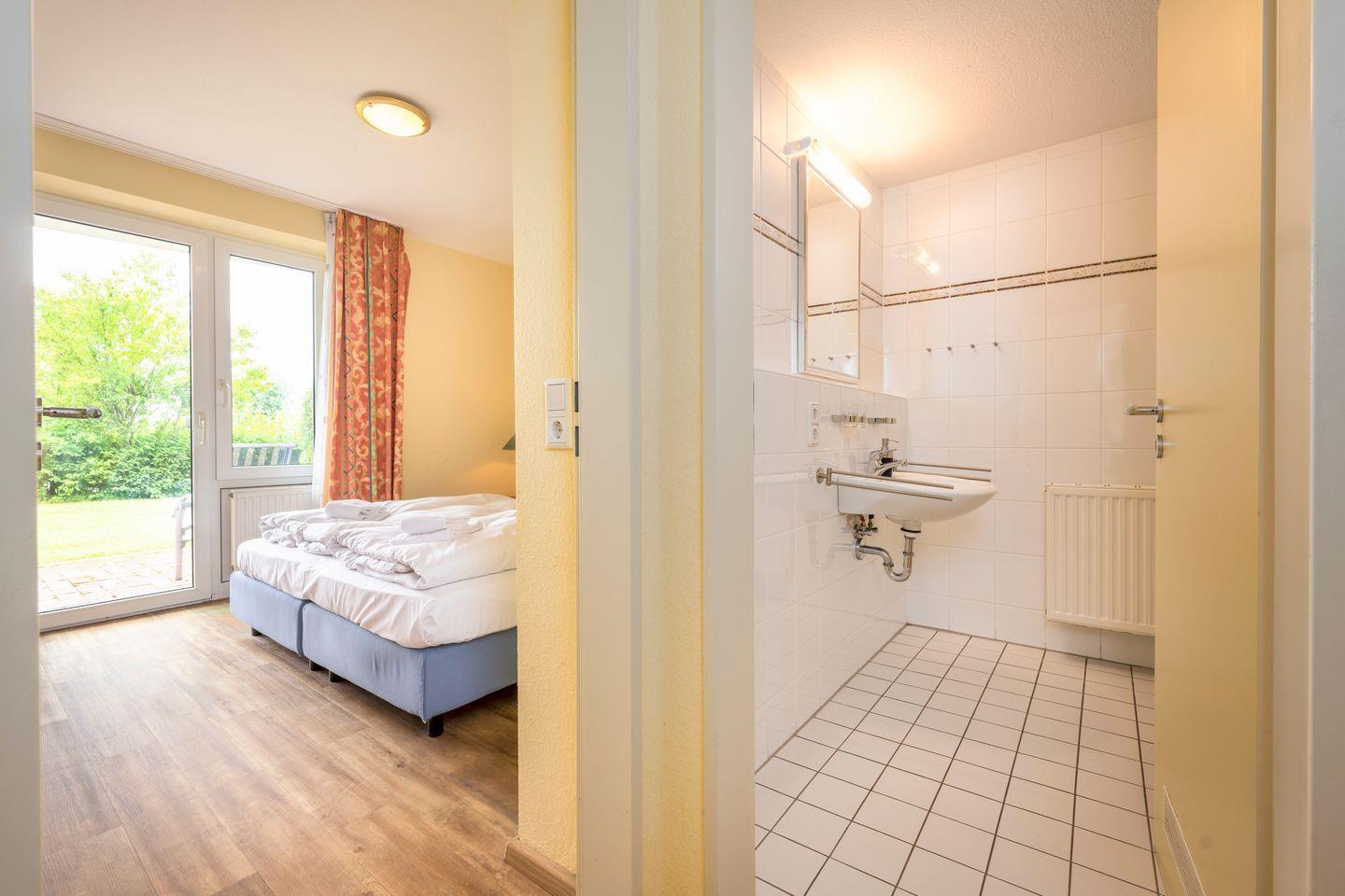 Euer Urlaubsdomizil bietet zwei separate Schlafzimmer mit jeweils einem Doppelbett (1,80 x 2,00 m) und eigenem Flatscreen-TV (32 Zoll). Bei dem Schlafzimmer zum Garten handelt es sich um einen SMART-TV. Der Wohnbereich verfügt über einen großen 48 Zoll-TV, eine Schlafcouch (1,40 x 2,00 m) und Zugang zur Terrasse mit Garten in Nord-West-Lage - ausgestattet mit Gartenmöbeln für 6 Personen und Sonnenschirm. Der Garten ist eingezäunt. Das Duschbad beinhaltet WC, Waschbecken, Dusche und Föhn.