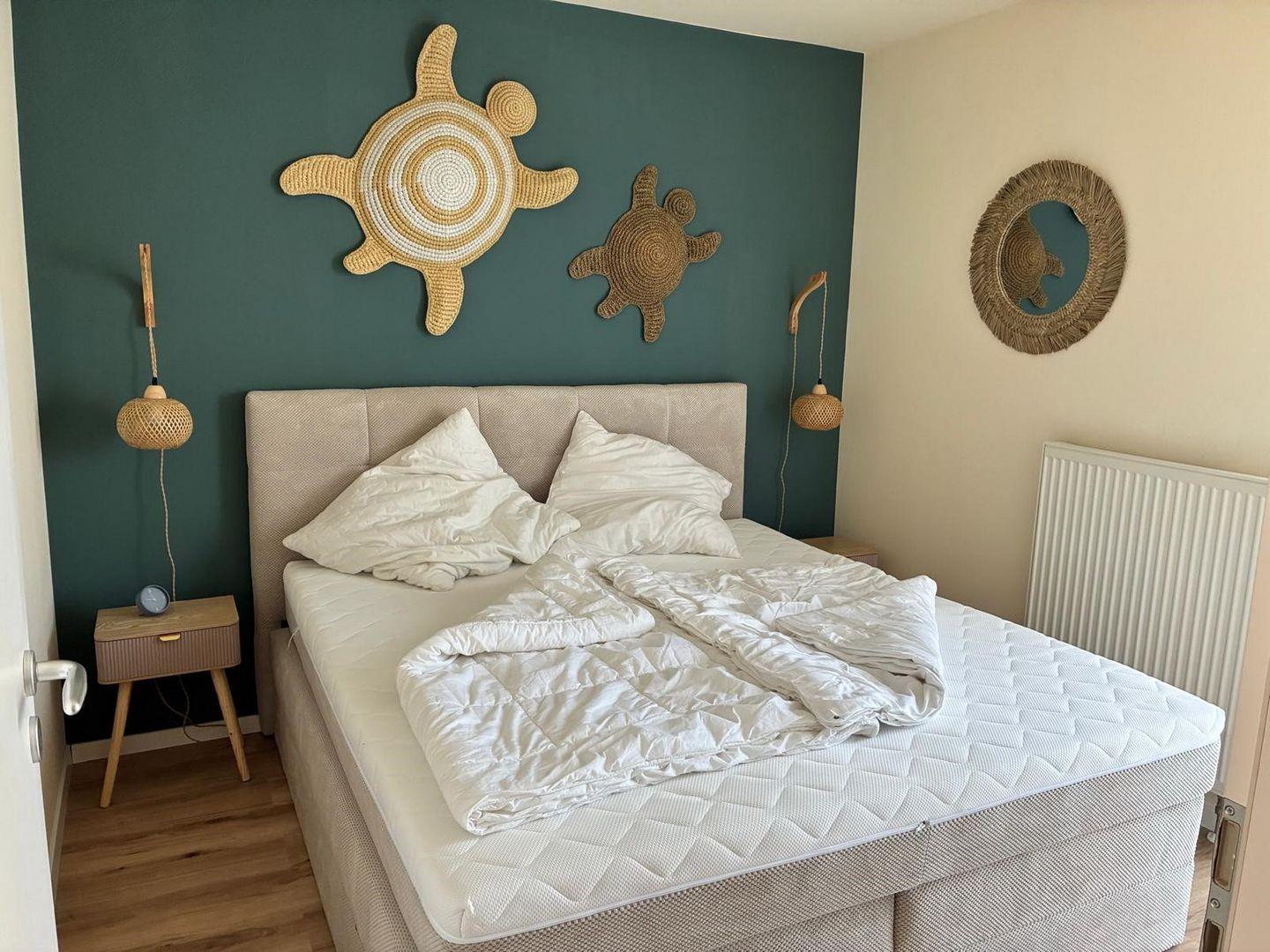 Im Hauptschlafzimmer erwartet euch ein komfortables Boxspringbett (180 x 200 cm) sowie ein moderner 32-Zoll-Smart-TV für entspannte Abende. Das zweite Schlafzimmer, liebevoll als „Unterwasserwelt“ gestaltet, ist besonders auf die Bedürfnisse von Kindern ausgerichtet. Hier gibt es ein Etagenbett und ein Einzelbett (jeweils 90 x 200 cm) – perfekt für die kleinen Gäste, die ein bisschen Abenteuer suchen.