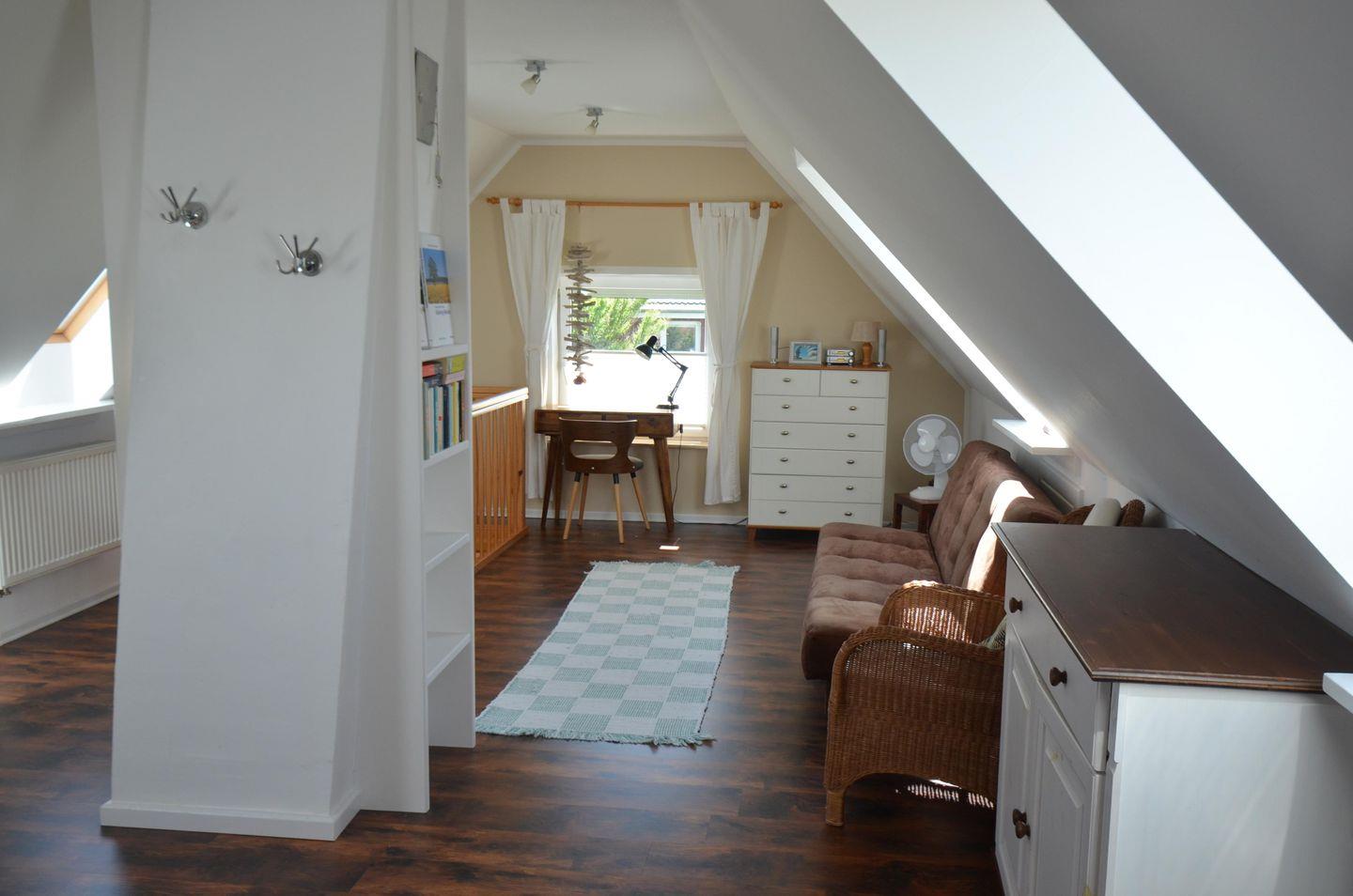 Das geschmackvoll eingerichtete Domizil verfügt über 1 Wohn-/Schlafzimmer, 1 Küche mit Essbereich, 1 Schlafraum, 1 Wohn-/Schlafstudio, 1 Duschbad mit ebenerdiger Dusche und WC, 1 Infrarotsauna (zur gemeinsamen Nutzung mit den Gästen des Nachbarferienhauses) sowie einen ca. 100 m² großen, eingezäunten Garten mit fantastischem Blick auf die angrenzenden Felder.