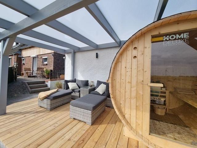 Das geschmackvoll eingerichtete Domizil verfügt über 1 Wohn-/Schlafzimmer, 1 Küche mit Essbereich, 3 Schlafräume, 1 Vollbad, 1 Duschbad, 1 Fasssauna sowie einen ca. 800 m² großen, eingezäunten Garten mit fantastischem Blick auf die angrenzenden Felder.