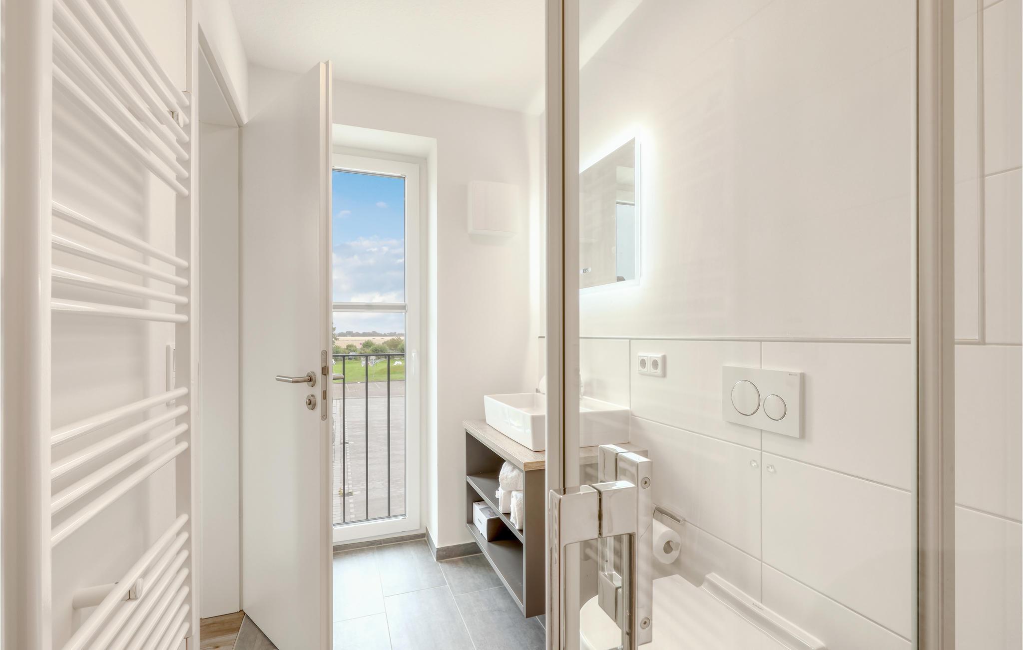 Velkommen til Nordstrand, en smuk halvø ved den slesvig-holstenske nordsøkyst i Vadehavet, som står på UNESCO's verdensarvsliste. Det moderne hus med flere lejligheder er en sand perle midt i naturen. Beliggenheden lige bagved diget er noget helt særligt. Den eksklusive lejligheds moderne maritime udtryk får jer i feriestemning med det samme. Gennem de store vinduespartier strømmer der meget dagslys, og de byder på et vidunderligt blik på det omkringliggende landskab. Med fokus på bæredygtighed er feriehuset ideel til feriegæster, der ønsker sig afslapning i naturen.