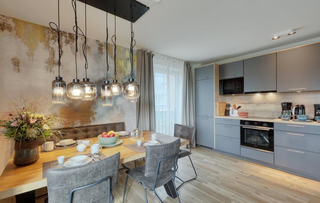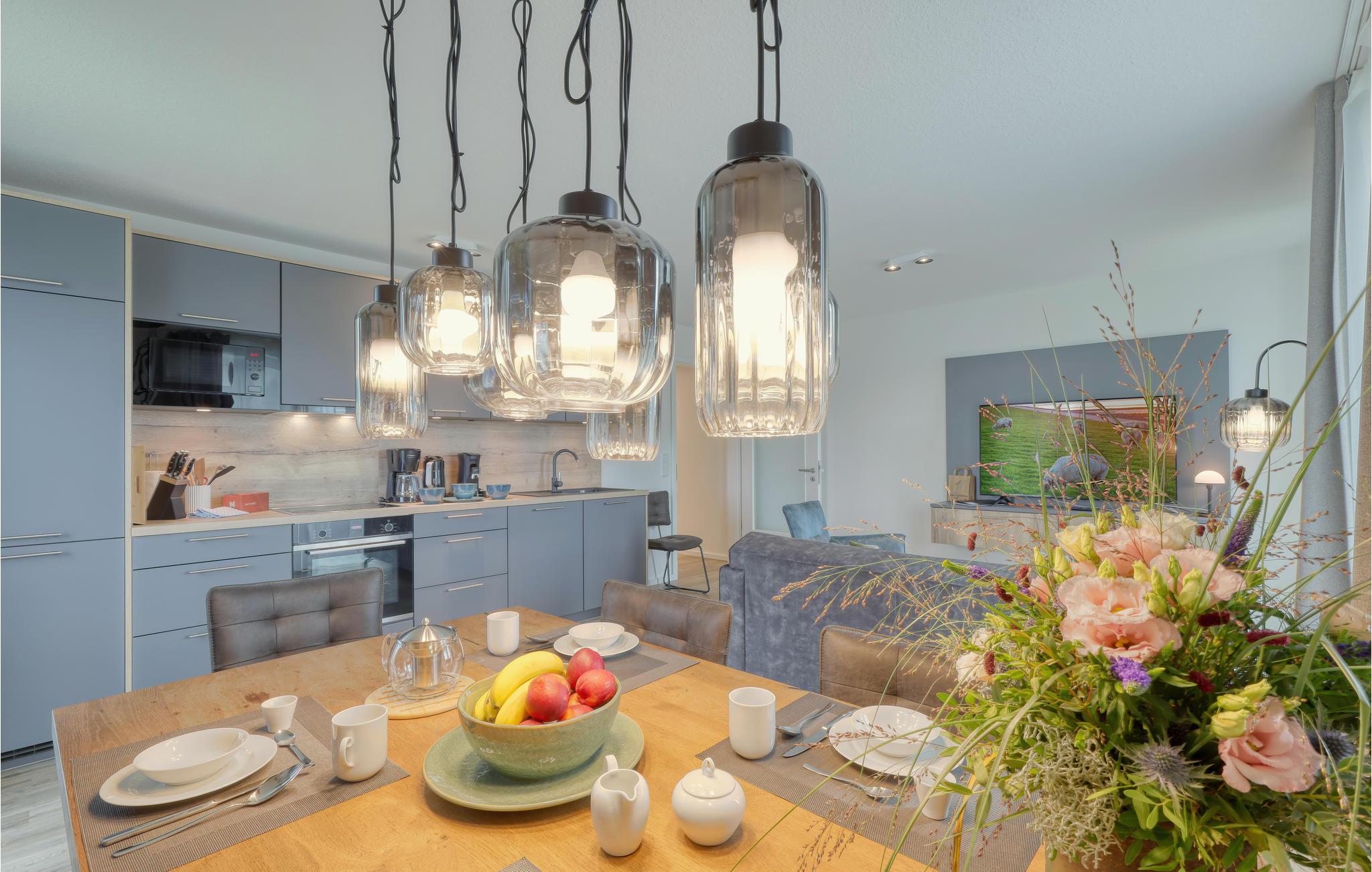 Start dagen med en lækker morgenmad i den hyggelige med det åbne køkken, eller nyd dagens første kop kaffe på altanen med den smukke udsigt. Gå derefter ned til stranden. Nordstrand byder på mange bademuligheder på regionens grønne strande, blandt andet stranden ved Süderhafen og den bemandede badestrand Holmer Siel. Der er desuden en lille fiskesø få meter fra lejlighedsdøren. Der er mange til at opdage i området. Tag på lange gåture på stranden eller cykeludflugter gennem maleriske landsbyer, og opdag Nationalpark Vadehavet.