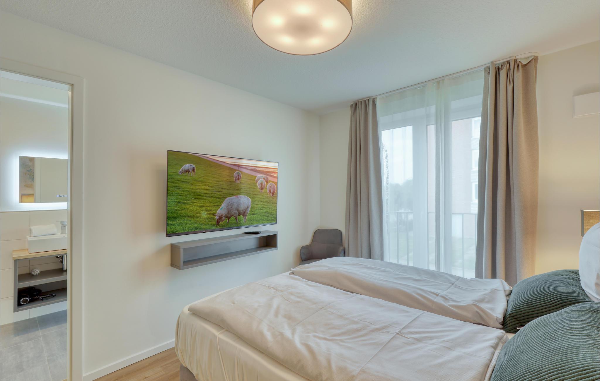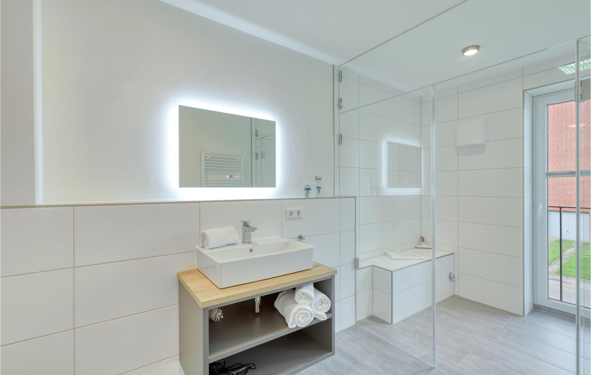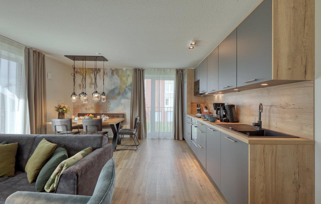 Velkommen til Nordstrand, en smuk halvø ved den slesvig-holstenske nordsøkyst i Vadehavet, som står på UNESCO's verdensarvsliste. Det moderne hus med flere lejligheder er en sand perle midt i naturen. Beliggenheden lige bagved diget er noget helt særligt. Den eksklusive lejligheds moderne maritime udtryk får jer i feriestemning med det samme. Gennem de store vinduespartier strømmer der meget dagslys, og de byder på et vidunderligt blik på det omkringliggende landskab. Med fokus på bæredygtighed er feriehuset ideel til feriegæster, der ønsker sig afslapning i naturen.