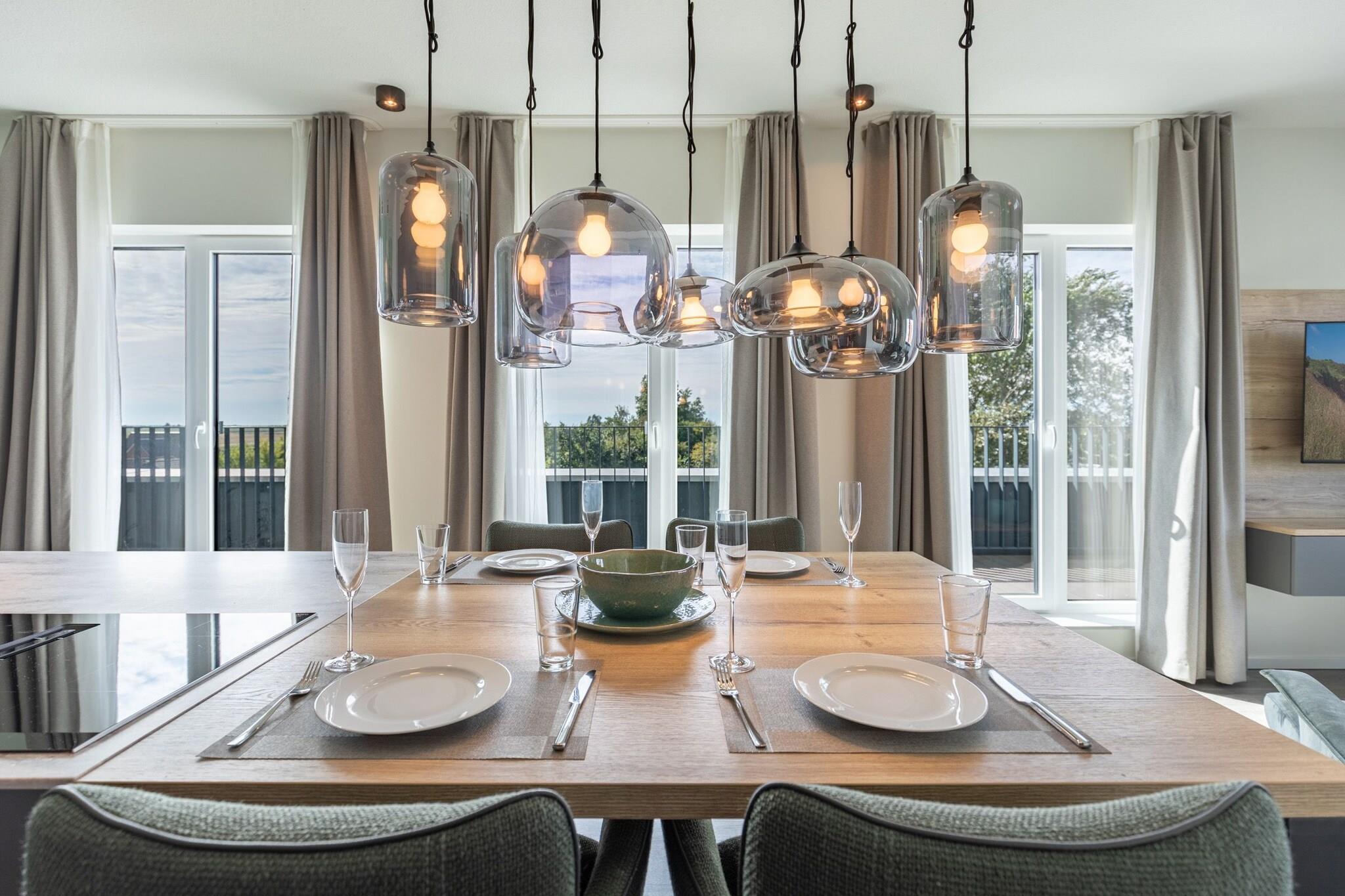 Velkommen til dit personlige ferieparadis! Denne stilfuldt indrettede ferielejlighed på 3. sal i et moderne lejlighedskompleks tilbyder alt, hvad du behøver for et afslappende ophold ved havet. Nyd den fantastiske panoramaudsigt over havet direkte fra altanen – perfekt til afslappede morgentimer eller romantiske solnedgange. Lejligheden har to komfortable soveværelser, en rummelig stue og spisestue samt et fuldt udstyret køkken med apparater i høj kvalitet. Et særligt højdepunkt er den private dampsauna, der giver dig mulighed for wellness og afslapning direkte i din bolig. Det moderne udstyr, de eksklusive materialer og de kærlige detaljer skaber en atmosfære, hvor du kan føle dig godt tilpas. Uanset om det er som et tilflugtssted for par, som stilfuld bolig for familier eller som eksklusiv base for din strandferie – denne ferielejlighed opfylder alle ønsker. Højdepunkter inkluderet: alle forbrugsbaserede energiomkostninger, WLAN, slutrengøring, vaskeripakke (obligatorisk bookbar) ), parkeringsplads, turistskat