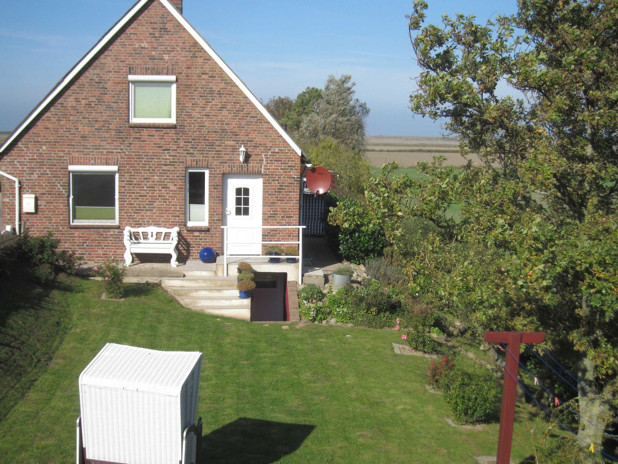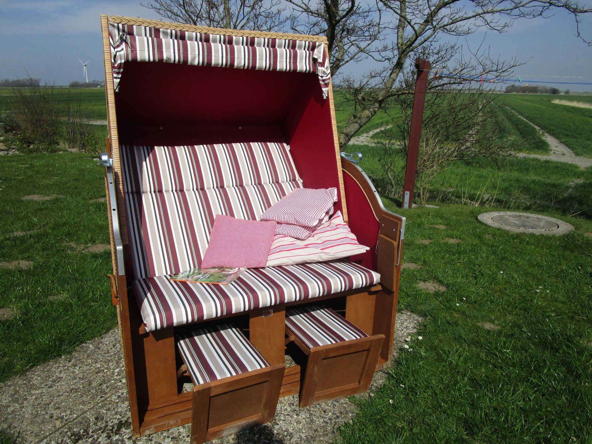Der wunderschön angelegte Garten mit handgeflochtenem Weidezaun ist umgeben von einem typischen Friesenwall und trennt beide Gebäude von einander, er bietet außerdem zahlreiche Sitzmöglichkeiten im Außenbereich, unter Anderem auch 2 Strandkörbe und im Sommer auch eine Sitzgruppe für 6 Personen mit großem Tisch aus Hartholz und Sonnenschirm, sowie einen abdeckbaren Traktorreifen als Sandkasten für die ganz kleinen Gäste.