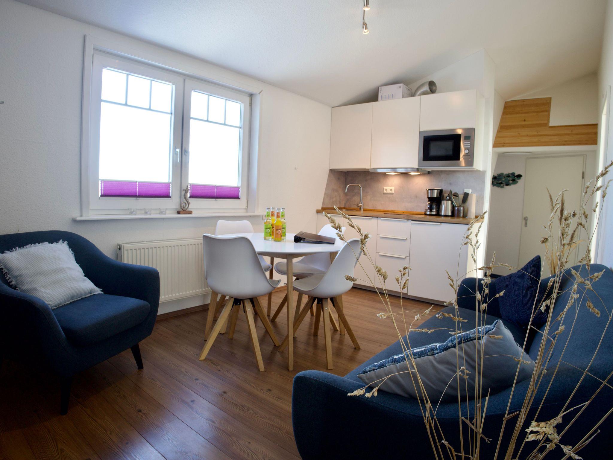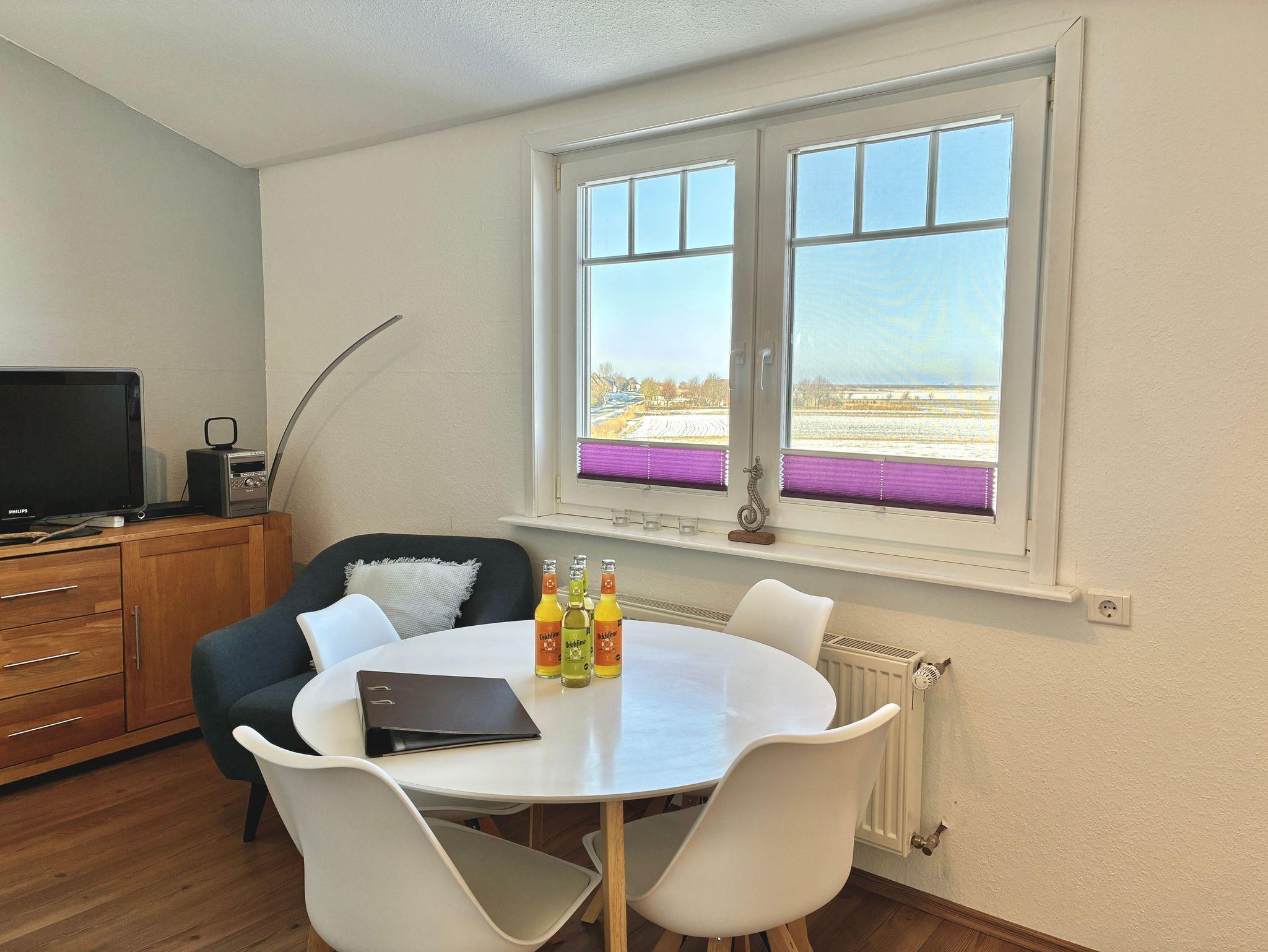 Die Ferienwohnung Op de Westerdiek 1 liegt im ersten Stock des Hauses und ist über eine separate Außentreppe erreichbar. Sie bietet Platz für bis zu vier Personen. Auch Ihre Vierbeiner sind hier herzlich willkommen.