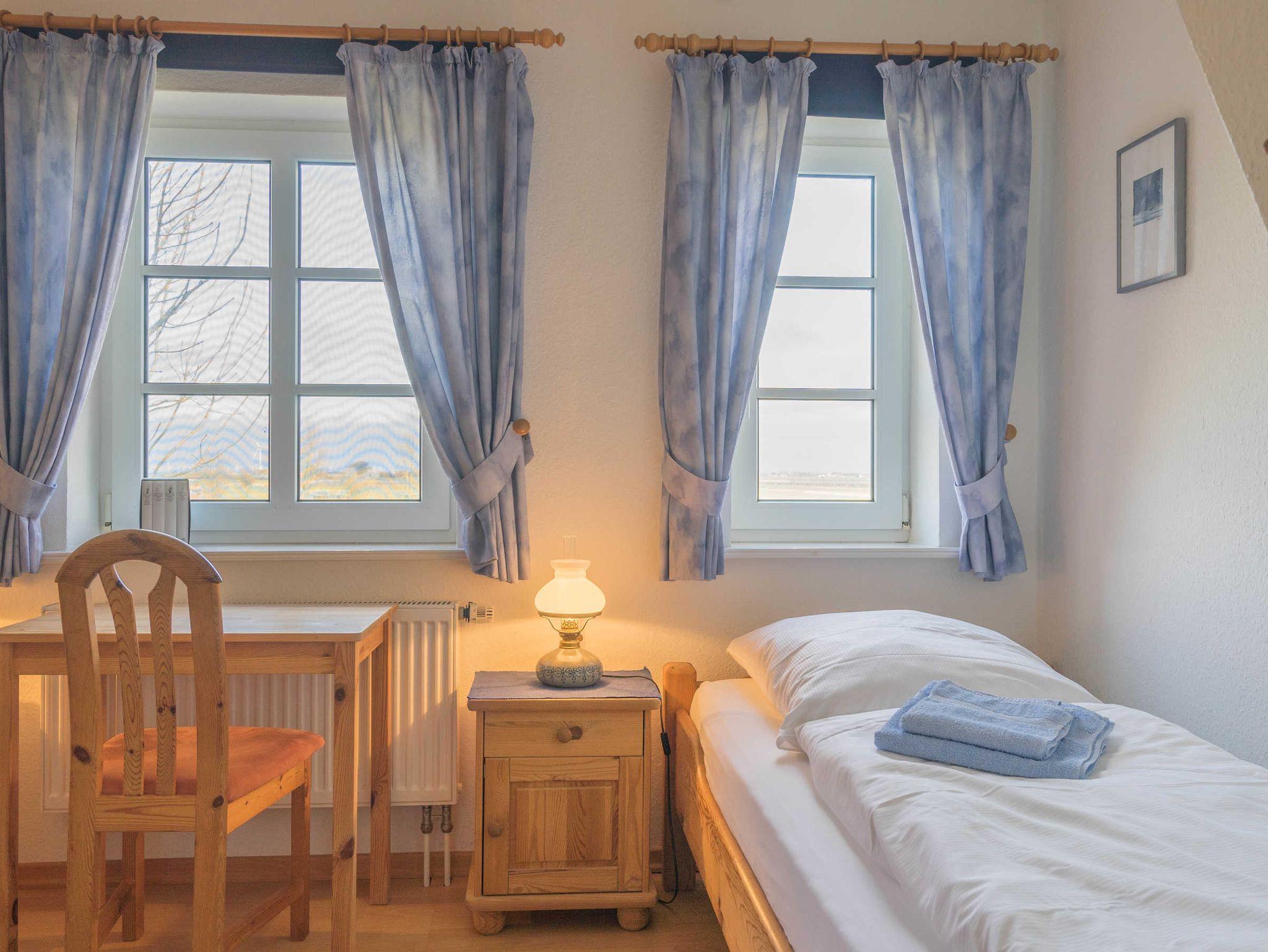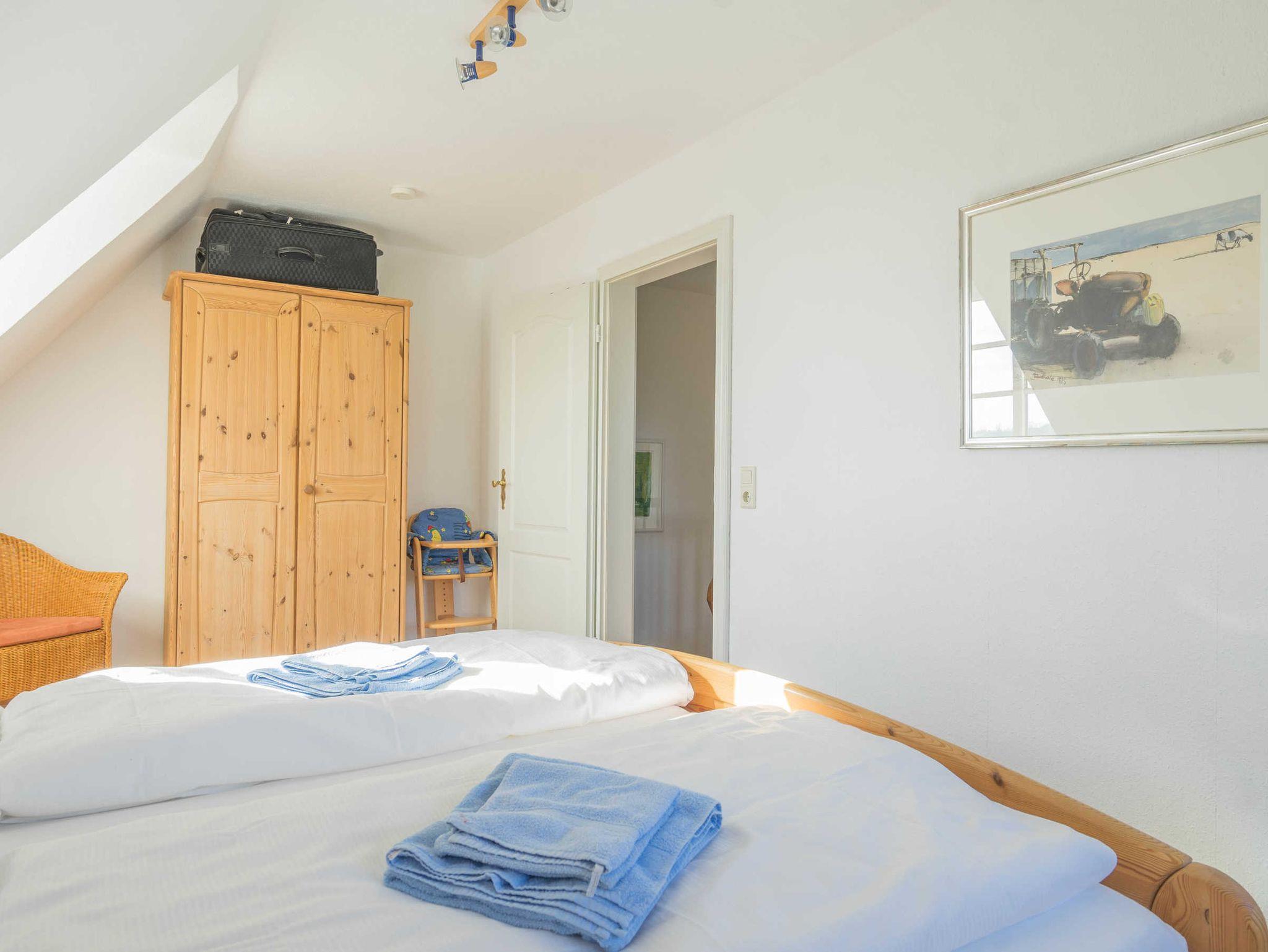 Das OG bietet zwei Schlafzimmer, eine Dusche mit WC, eine Waschmaschine und einen Trockner. Ein weiterer Schlafraum befindet sich im Dachgeschoß und ist über eine Raumspartreppe zu erreichen. Ganz in der Nähe finden Sie einen Bäcker, verschiedene Speiselokale und Fischrestaurants. Das Kurmittelhaus für Anwendungen, Packungen, Bäder und Massagen ist ca. 1300 m entfernt. Ein Hallenbad mit Sauna befindet sich neben dem Kurmittelhaus im Norderhafen.