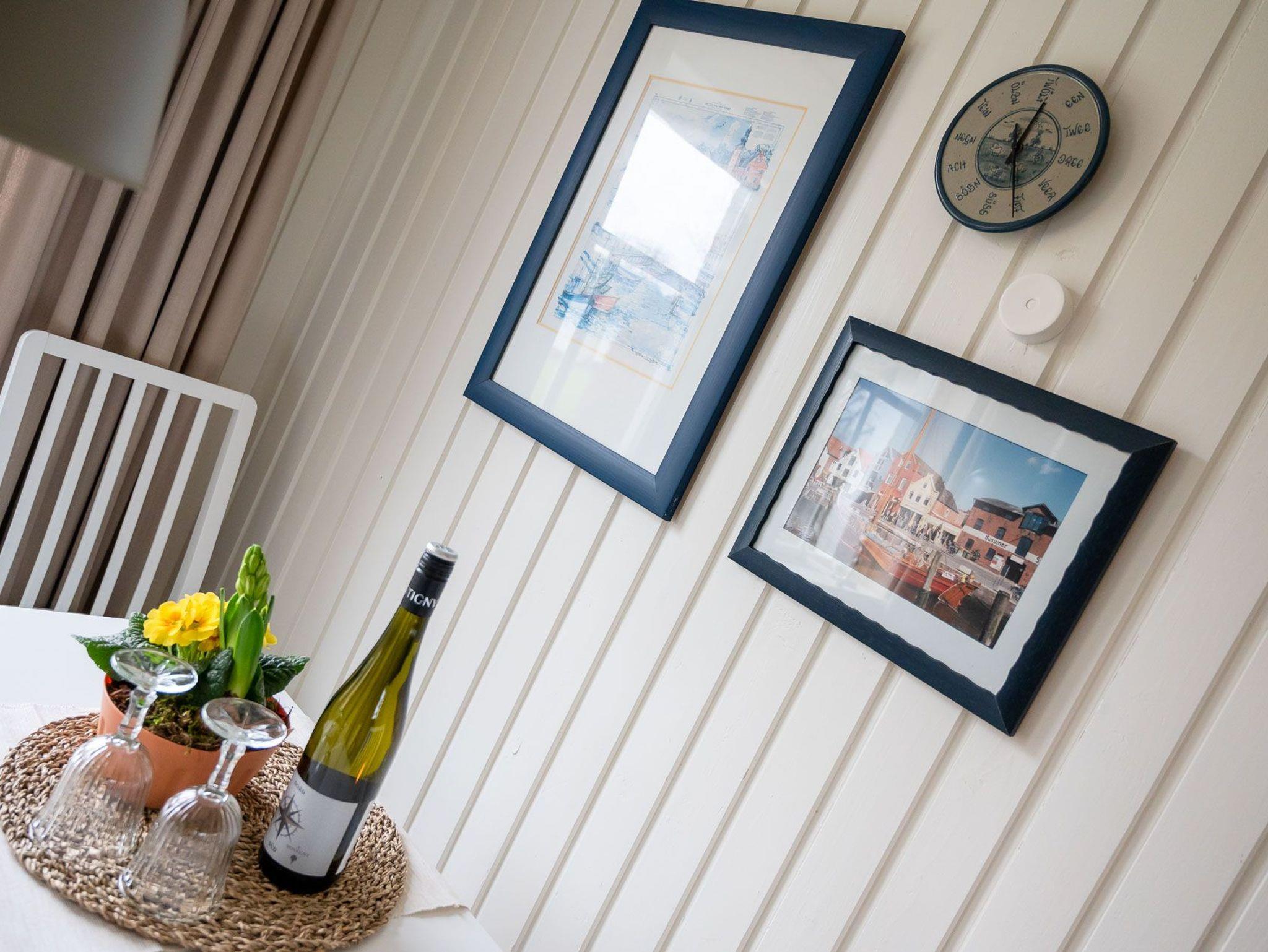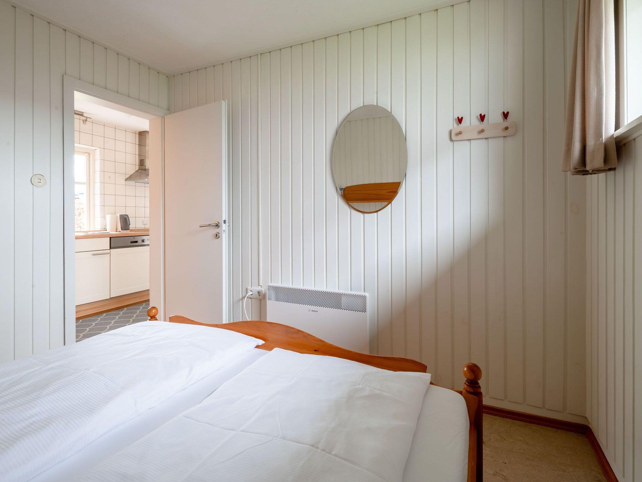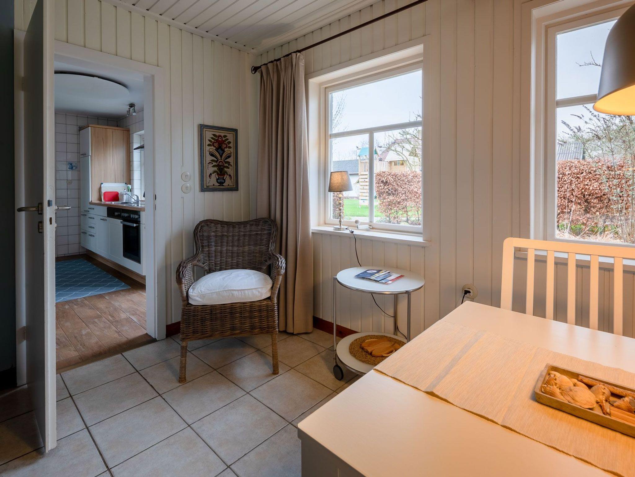Erleben Sie einen erholsamen Urlaub in Haus Uwe, einem eingeschossigen Ferienhaus für bis zu 4 Personen. Das Haus verfügt über ein Wohnzimmer, zwei Schlafzimmer, eine Küche und ein Duschbad mit skandinavisch-rustikalem Interieur und Vollholzmöbeln, die je nach Jahreszeit ihre Farben wechseln. Ein Gaskaminofen im Wohnzimmer sorgt für wohlige Wärme. Die Einbauküche ist mit Herd/Ceranfeld, Backofen, Spülmaschine, Kaffeemaschine, Wasserkocher und Toaster ausgestattet.