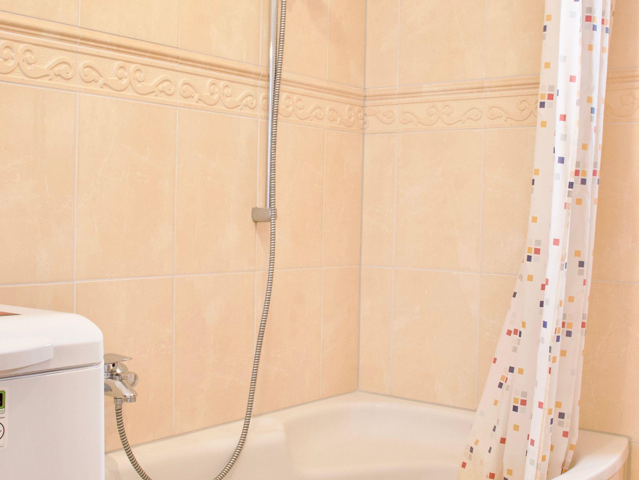 Das helle Badezimmer ist mit einer Duschwanne ausgestattet und fügt sich ruhig und funktional in das Gesamtbild der Wohnung ein.