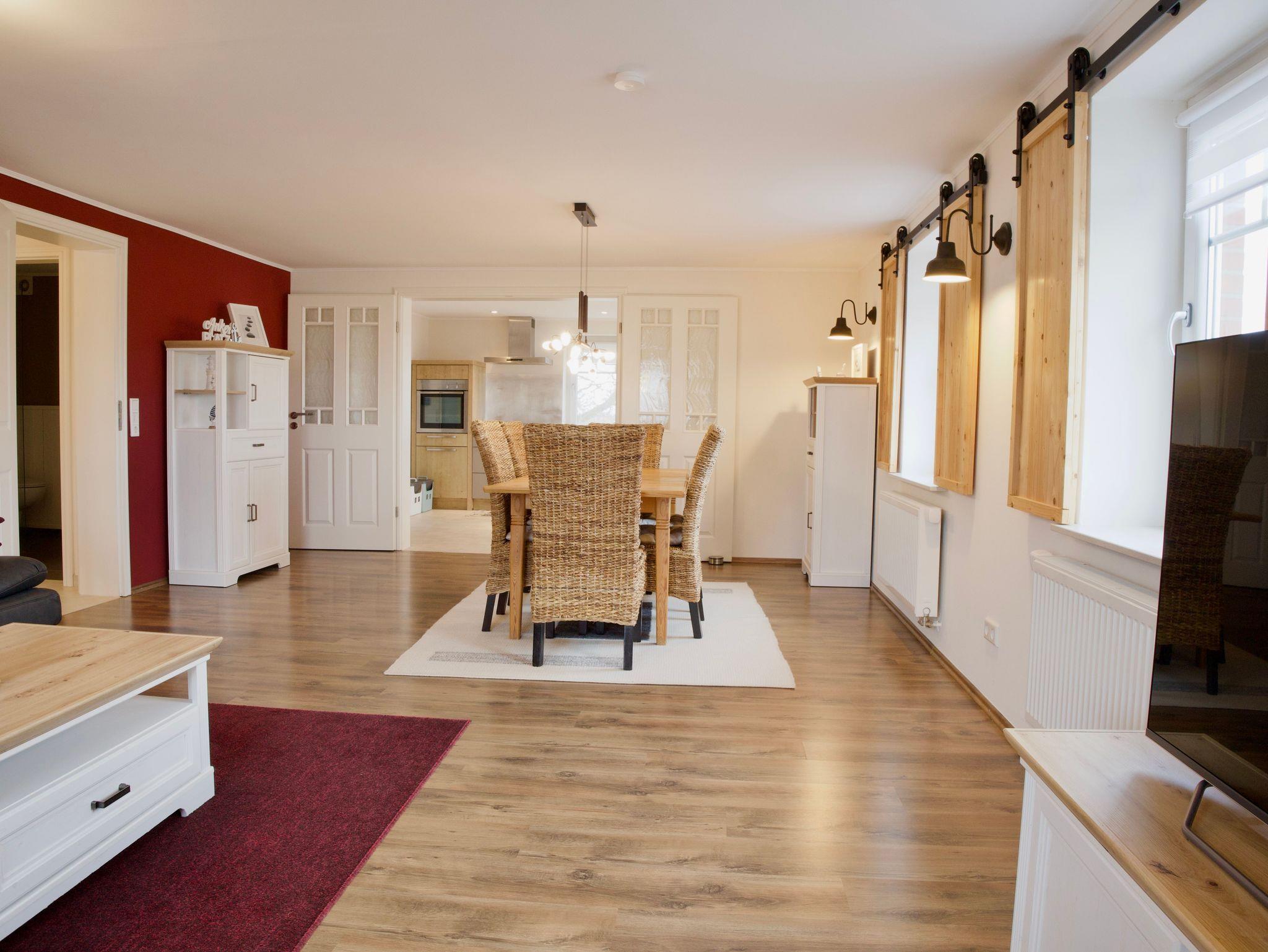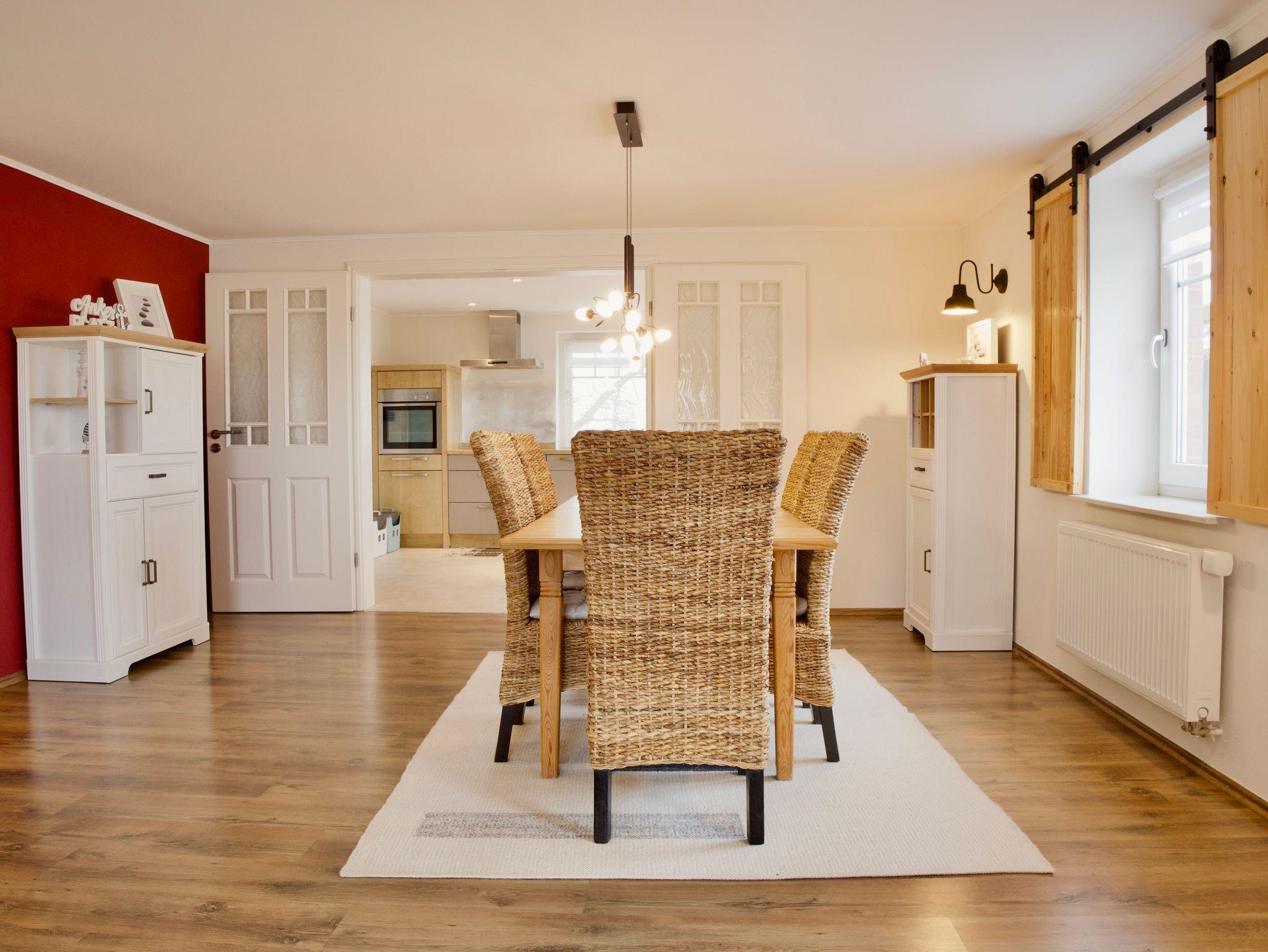 Das frisch renovierte Haus liegt zentral auf dem Osterdeich und bietet auf rund 120 Quadratmetern Wohnfläche viel Raum und eine klare Struktur für entspannte Urlaubstage mit bis zu fünf Personen. Helle Räume, eine ruhige Gestaltung und der weite Blick über die Felder und die Natur Nordstrands prägen bereits beim Ankommen das Wohngefühl.