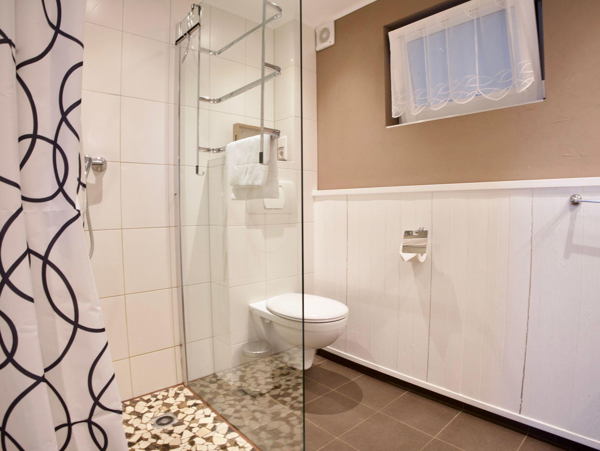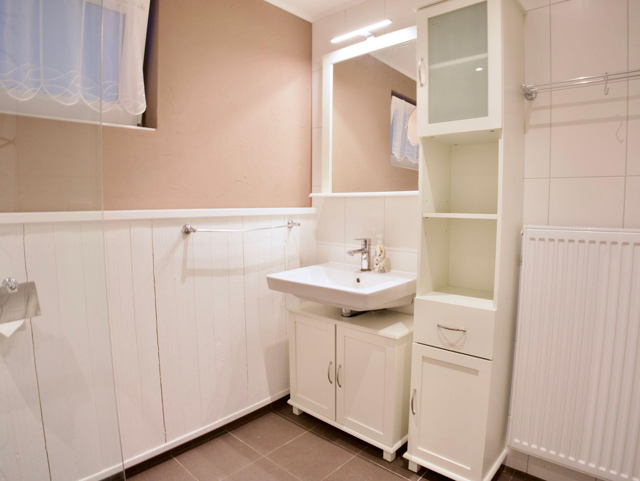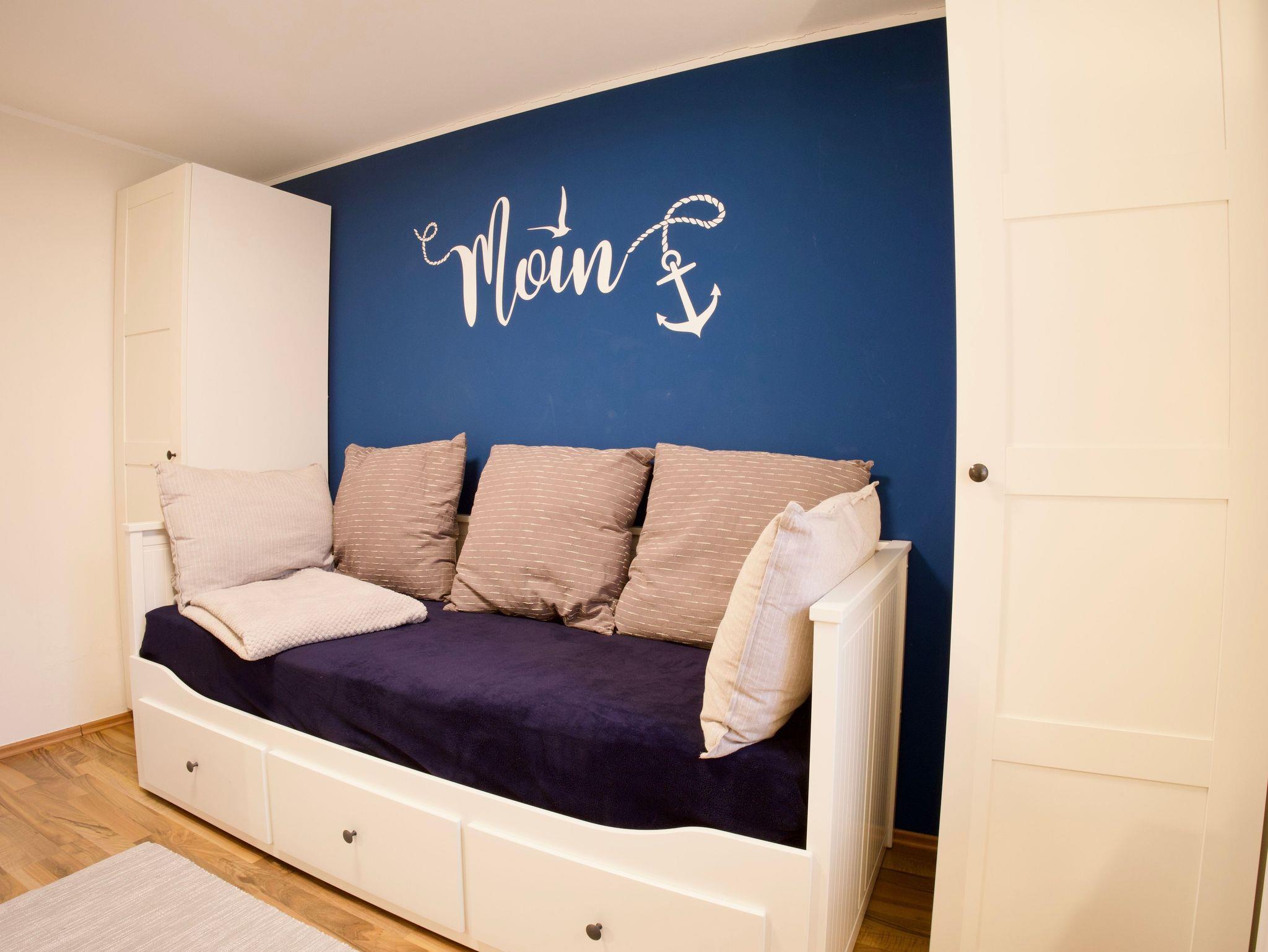 Ebenfalls im Erdgeschoss befinden sich zwei Schlafzimmer. Eines ist mit einem französischen Bett in der Größe 160 Zentimeter ausgestattet, das zweite verfügt über eine ausziehbare Schlafcouch. Ein hell und ruhig gestaltetes Duschbad ergänzt das Raumangebot auf dieser Ebene.