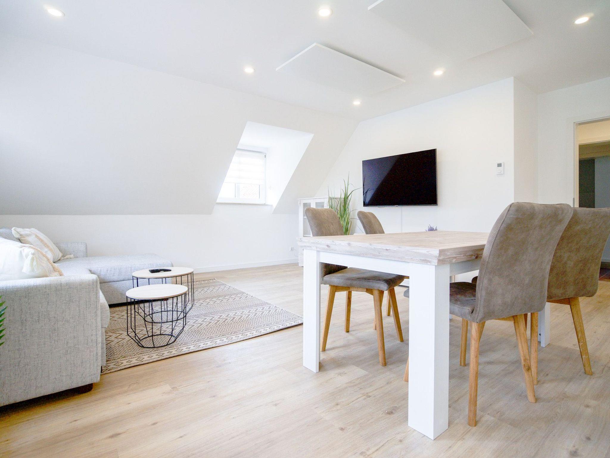 Das helle und geschmackvoll eingerichtete Appartement bietet Platz für bis zu vier Personen. Das Schlafzimmer (1 Doppelbett 180 x 200) ist mit einem Boxspringbett ausgestattet und verfügt über einen Smart-TV. Das Wohnzimmer verfügt über zwei weitere Schlafmöglichkeiten (1 Schlafsofa, 180 x 200).