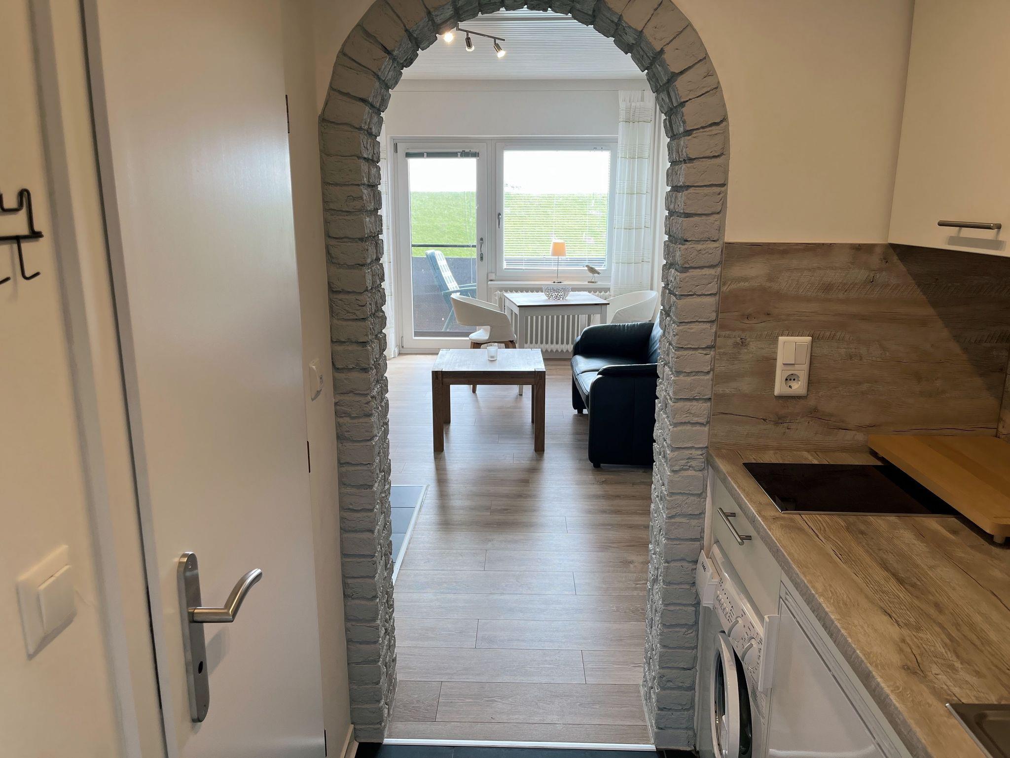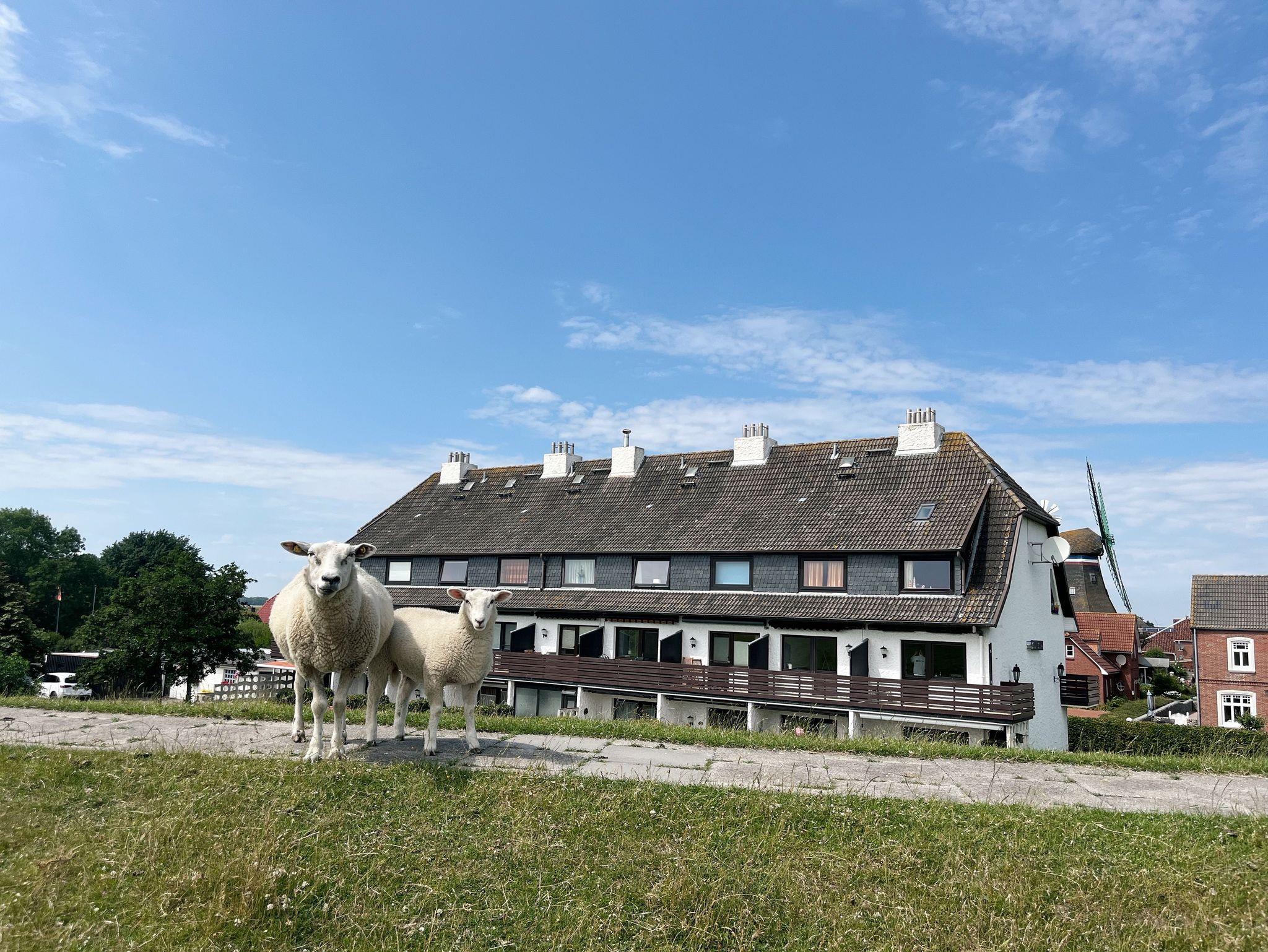 Freuen Sie sich auf ein behagliches Doppelbett mit Blick auf die historische Engelmühle, eine charmante Küchenzeile mit integrierter Waschmaschine, ein modernes Duschbad und ein großzügiges Wohnzimmer mit einladender Essecke. Der große, liebevoll eingerichtete Balkon mit Ausblick auf den Süderhafen lädt dazu ein, entspannte Stunden zu genießen ideal, um die vorbeiziehenden Schafe zu beobachten - der Deich nur 15 Meter entfernt liegt.