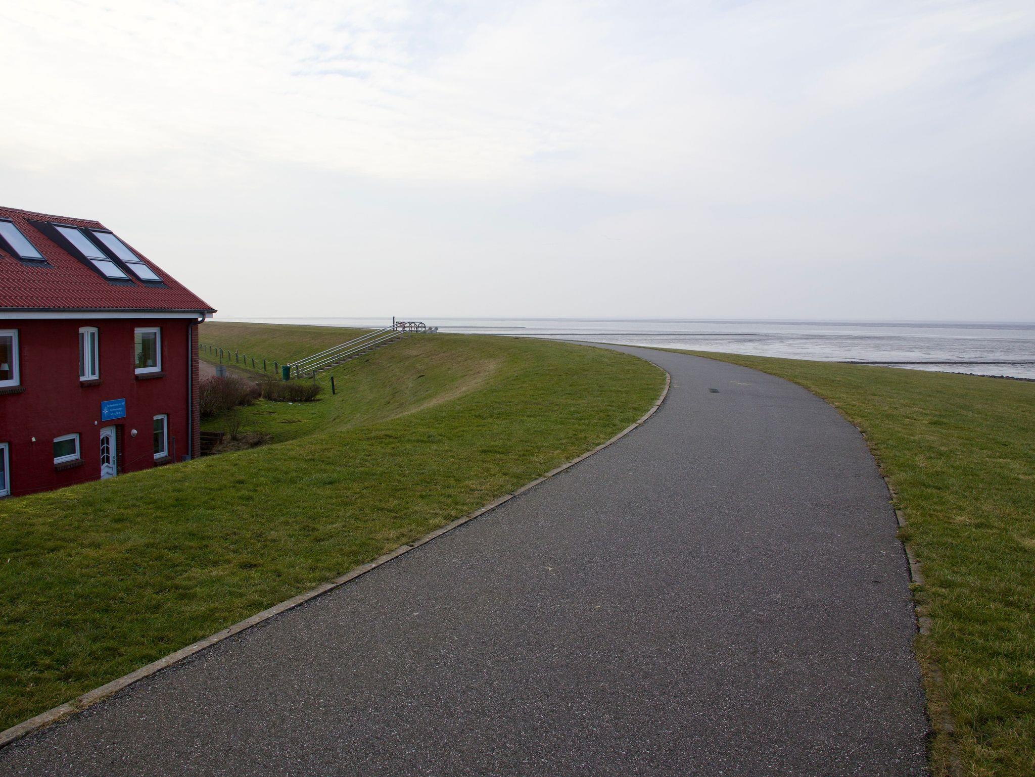 Die Ferienwohnung Halligblick befindet sich im ersten Obergeschoss des Kapitänshus und liegt direkt am Außendeich. Durch diese besondere Lage eröffnet sich ein freier Blick über den Deich auf die Halligen, die Insel Pellworm und die weite Nordsee. Das Meer ist hier stets präsent, die frische, salzhaltige Seeluft gehört ganz selbstverständlich zum Aufenthalt.