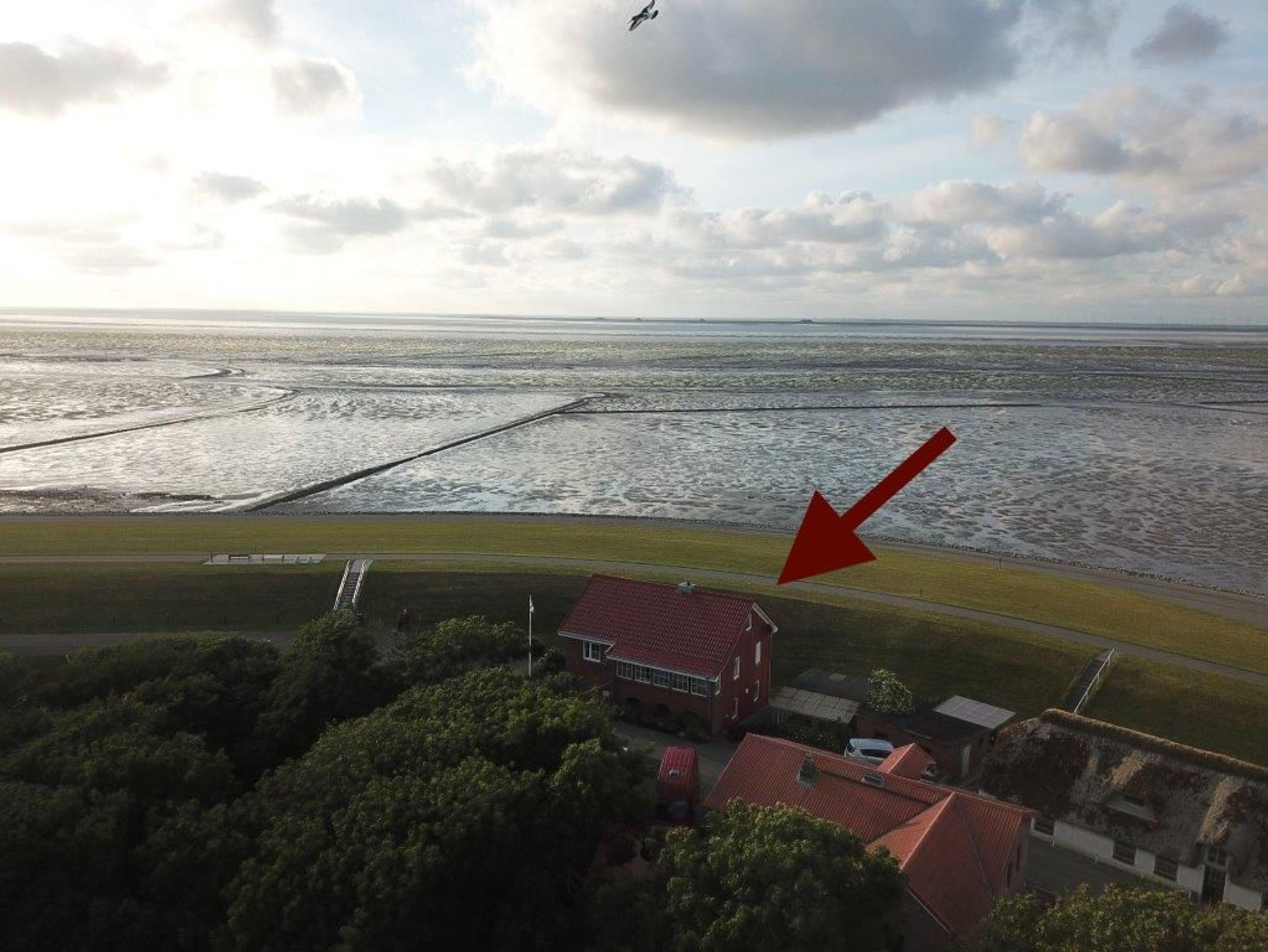Direkt am Aussendeich gelegen ist das Kapitänshus. Die Ferienwohnung Deichläufer befindet sich im Erdgeschoss und damit direkt am Deichfuß. Von Eingangstür bis Deichkrone trennen Sie nur ziemlich genau 12 Meter.