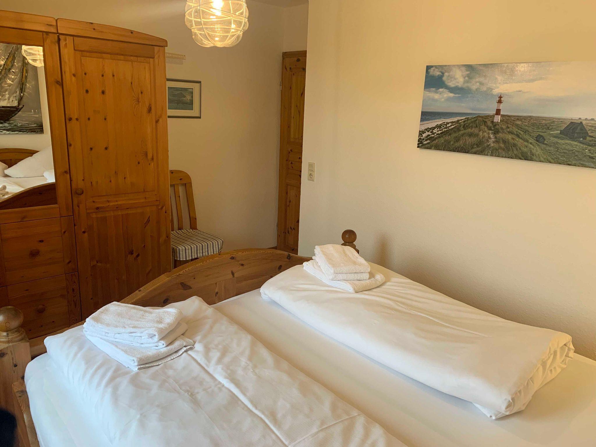 Die Ferienwohnung ist für bis zu 6 Personen ausgestattet. Es gibt drei Schlafzimmer, eines mit Doppelbett, ein französisches Bett und eines mit Hochbett. Dieses Schlafzimmer ist allerdings nur für Kinder bis 12 Jahre geeignet. Die Küche ist vollausgestattet mit Backofen, Geschirrspüler, Mikrowelle, Kaffeemaschine.