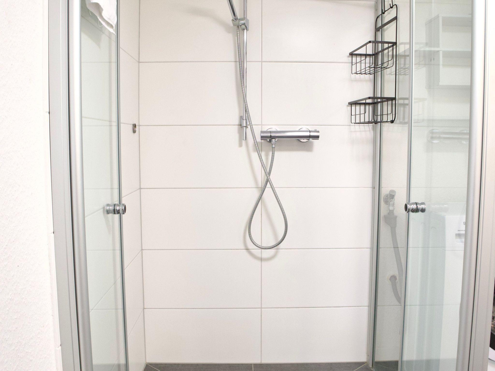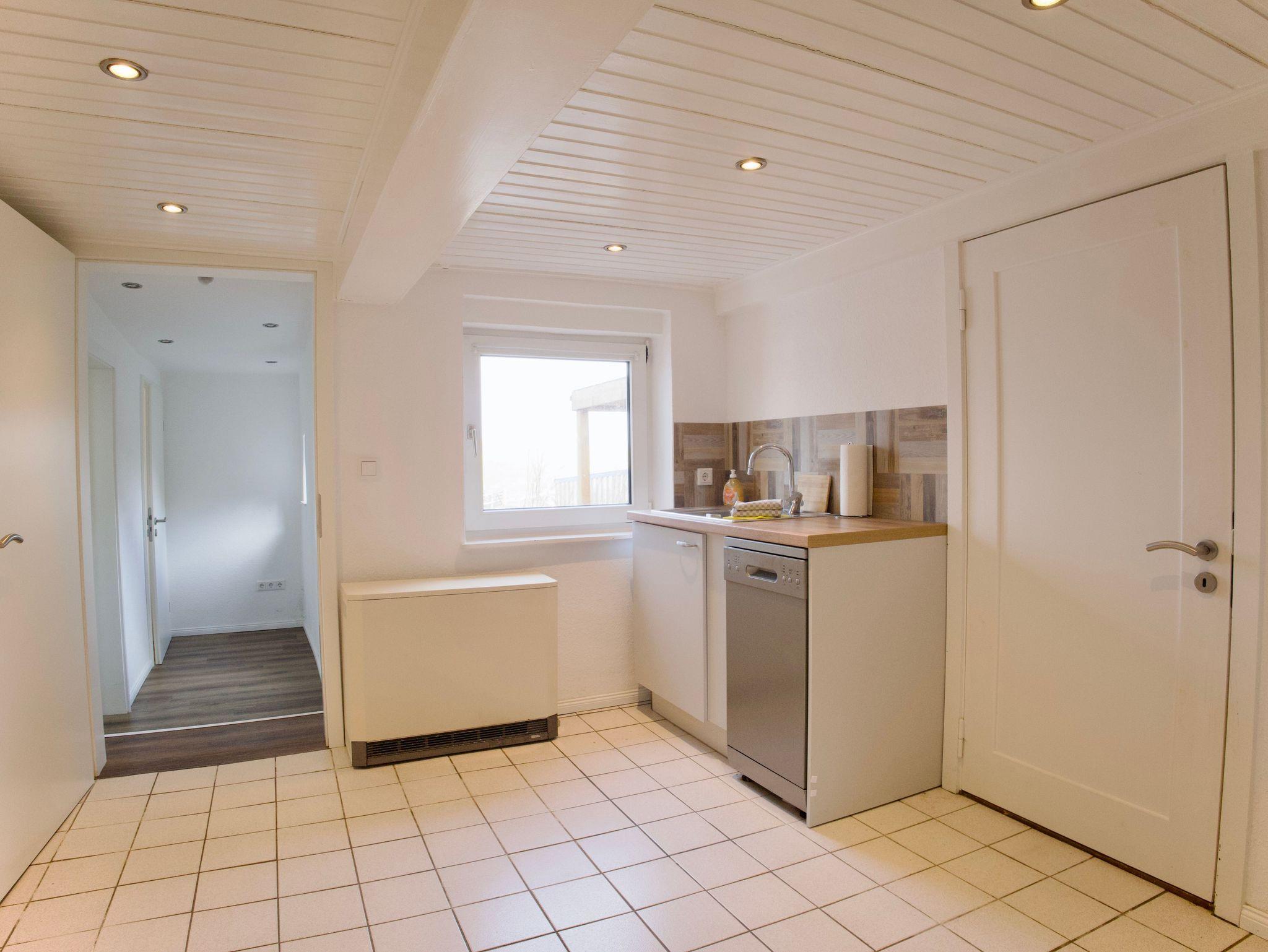 Die Küche schließt direkt an den Wohnbereich an und ist funktional ausgestattet. Eine Spülmaschine, eine Gefriermöglichkeit sowie eine Kaffeemaschine stehen zur Verfügung und machen auch längere Aufenthalte angenehm.