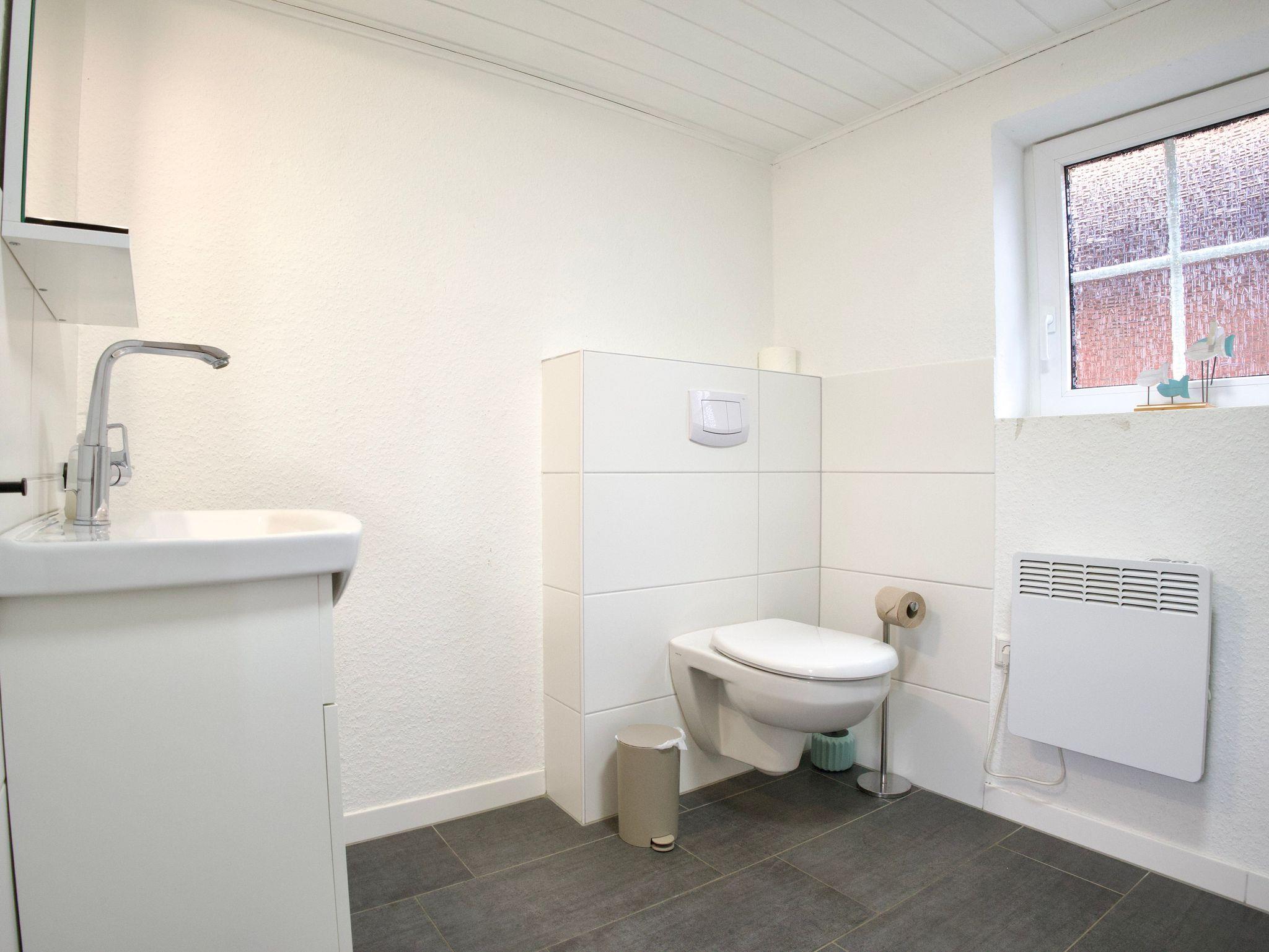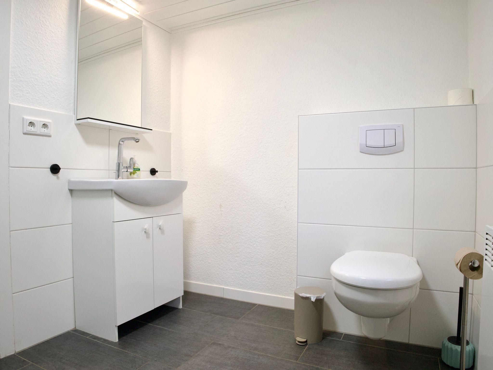 Ebenfalls im Erdgeschoss befinden sich ein Duschbad mit Waschmaschine sowie ein separates Gäste-WC.