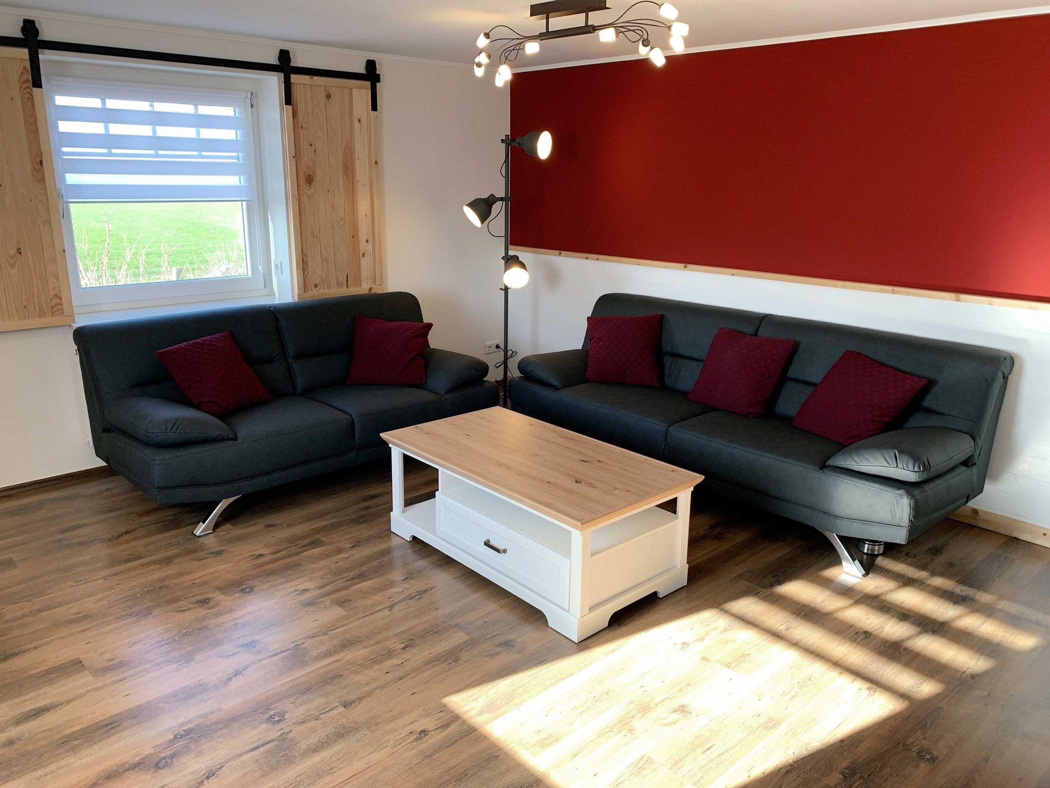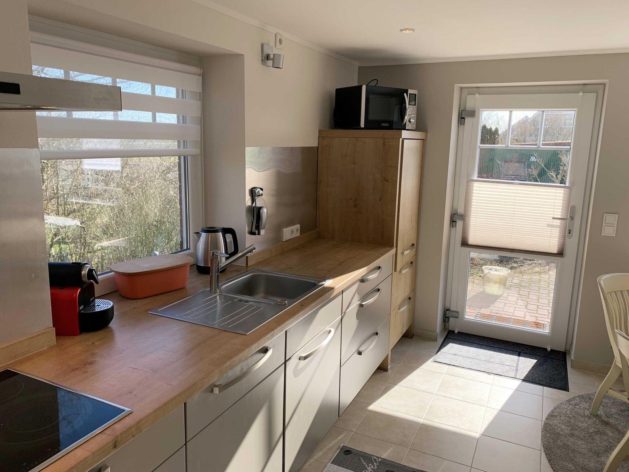 Das 120qm große, frisch renovierte Huus Veerundsüsti, zentral auf dem Osterdeich gelegen, ist für bis zu 5 Personen geeignet. Im Erdgeschoss ist das große, lichtdurchflutete Wohnzimmer mit Essecke und wunderschönem Blick auf die Felder und Natur Nordstrands. Mit Flügeltür verbunden ist die große vollausgestattete Küche, die sowohl separat, als auch eine offene Küche sein kann - so wie es eben beliebt Von dort aus gelangt man direkt auf die möblierte Sonnenterrasse mit eigenem Strandkorb. Weiterhin sind im Erdgeschoss 2 Schlafzimmer, eines mit Französischem Bett (160cm) und eines mit 80cm Schlafcouch, welche sich auf die doppelte Größe ausziehen lässt. Auch das Duschbad befindet sich unten.