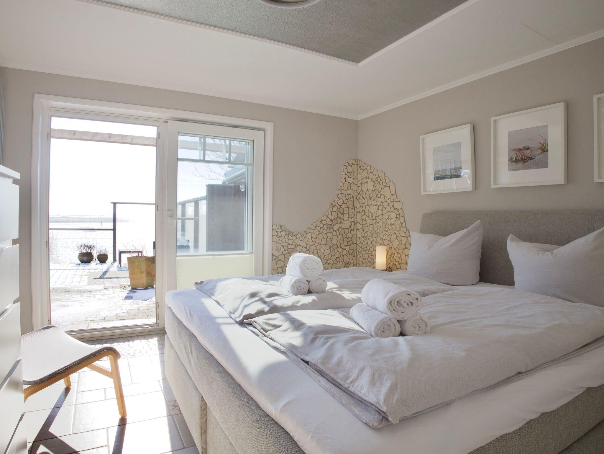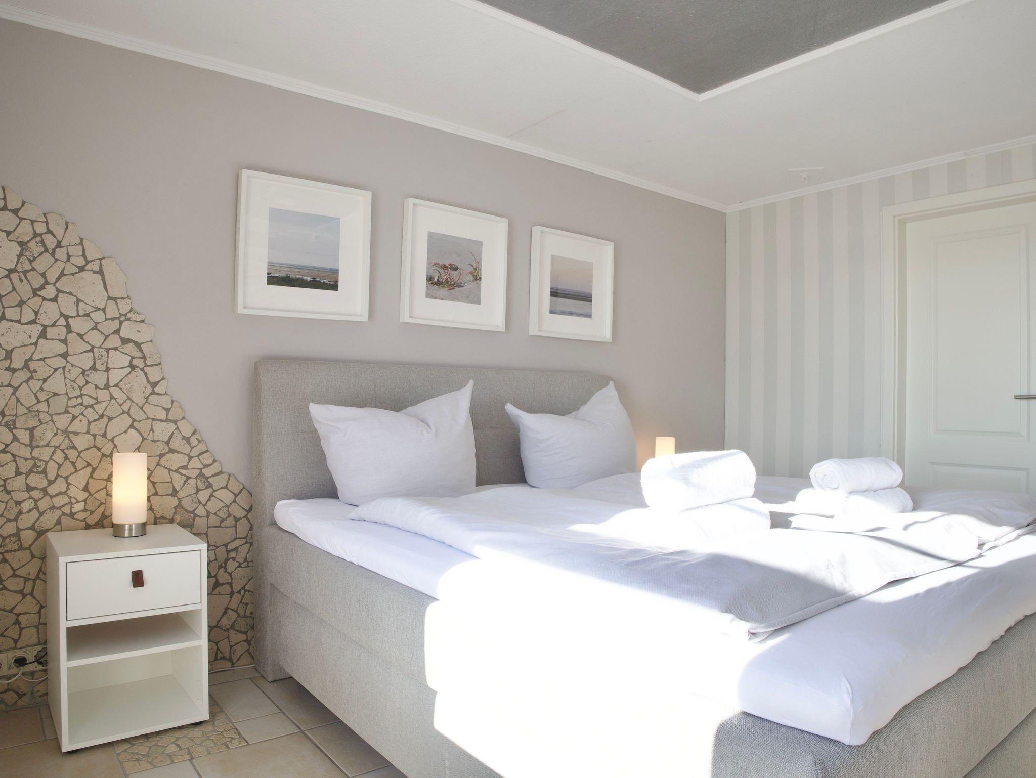 Die Ferienwohnung Op de Westerdiek 2 liegt im Erdgeschoss des Hauses und bietet Platz für zwei bis vier Personen. Auch Ihre Vierbeiner sind hier herzlich willkommen. Die Wohnung öffnet sich mit einem ruhigen, klaren Wohnkonzept zur nordfriesischen Landschaft und vermittelt bereits beim Eintreten ein Gefühl von Weite und Gelassenheit.