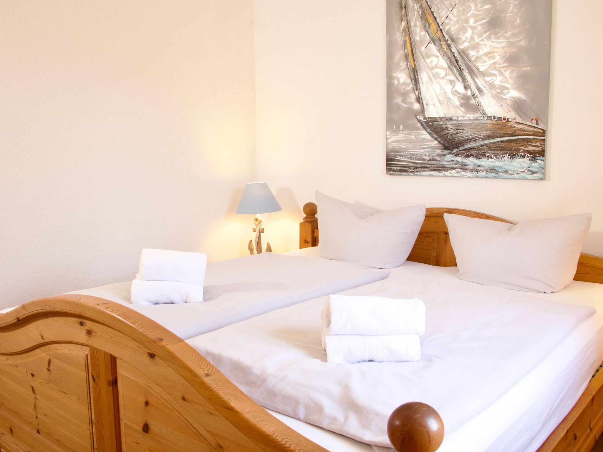 Die Wohnung ist für bis zu sechs Personen ausgelegt und eignet sich ideal für gemeinsame Urlaubstage mit der Familie oder mit Freunden. Insgesamt stehen drei separate Schlafzimmer zur Verfügung. Ein Schlafzimmer ist mit einem Doppelbett ausgestattet, ein weiteres mit einem französischen Bett. Das dritte Schlafzimmer verfügt über ein Hochbett und ist besonders für Kinder bis etwa zwölf Jahre geeignet. Zwei Duschbäder ergänzen das Raumangebot sinnvoll, eines davon ist direkt vom kleineren Schlafzimmer aus zugänglich.