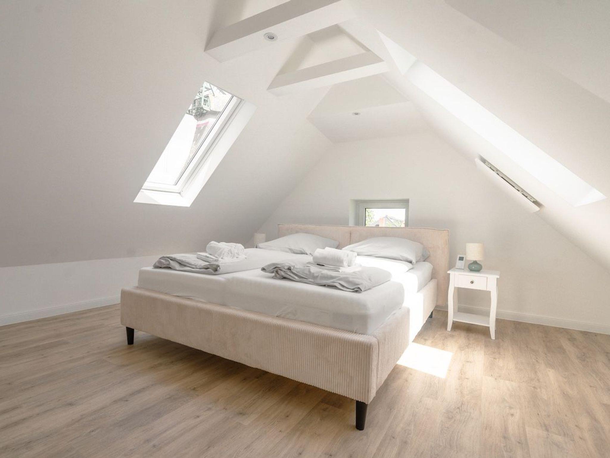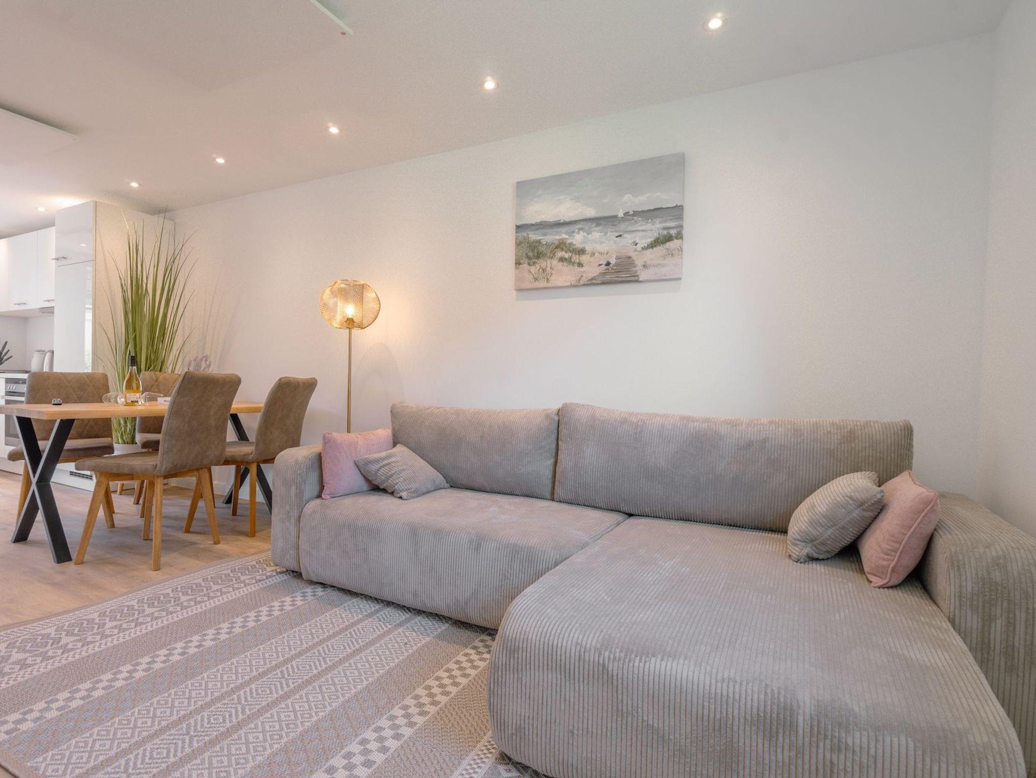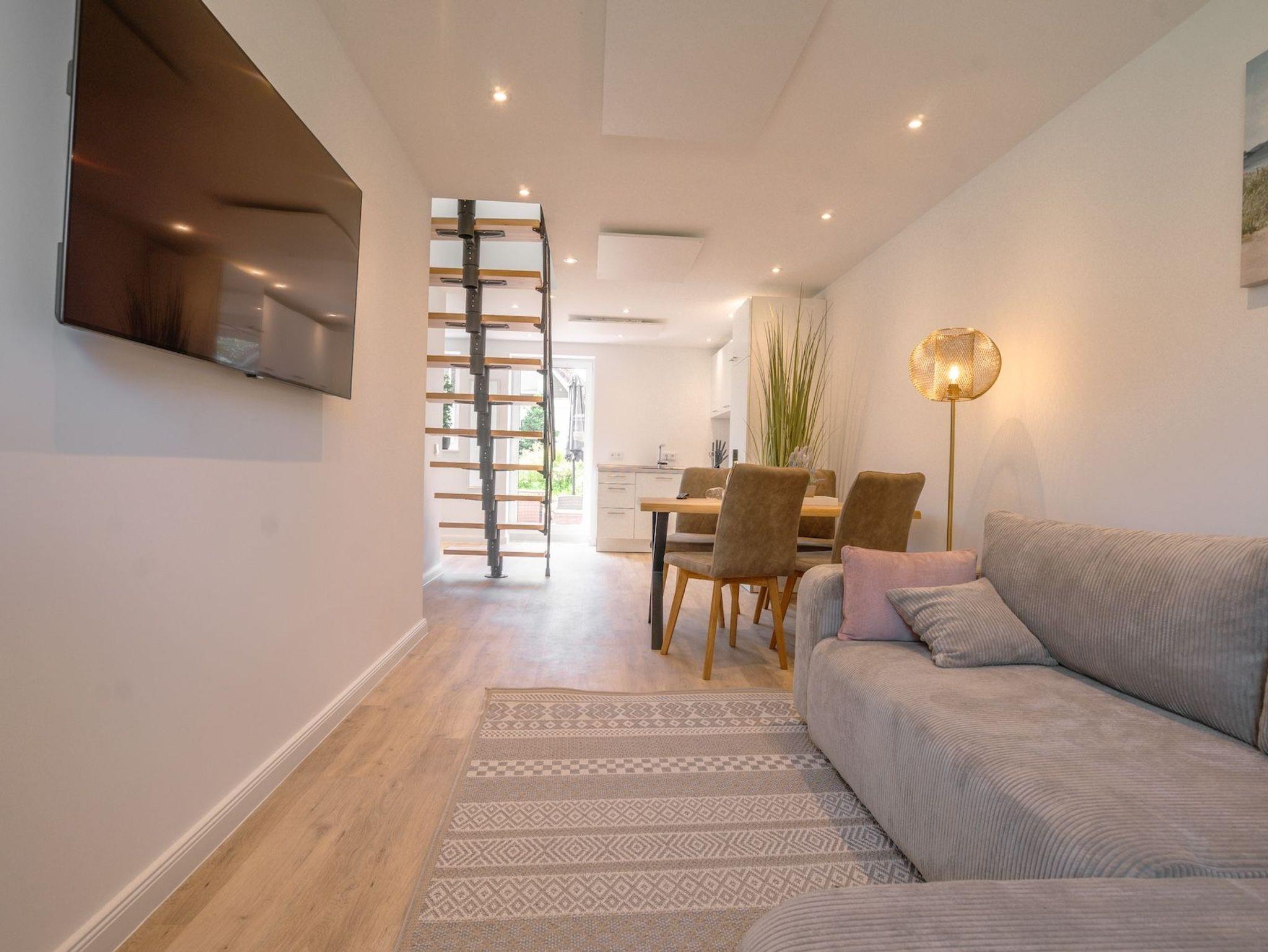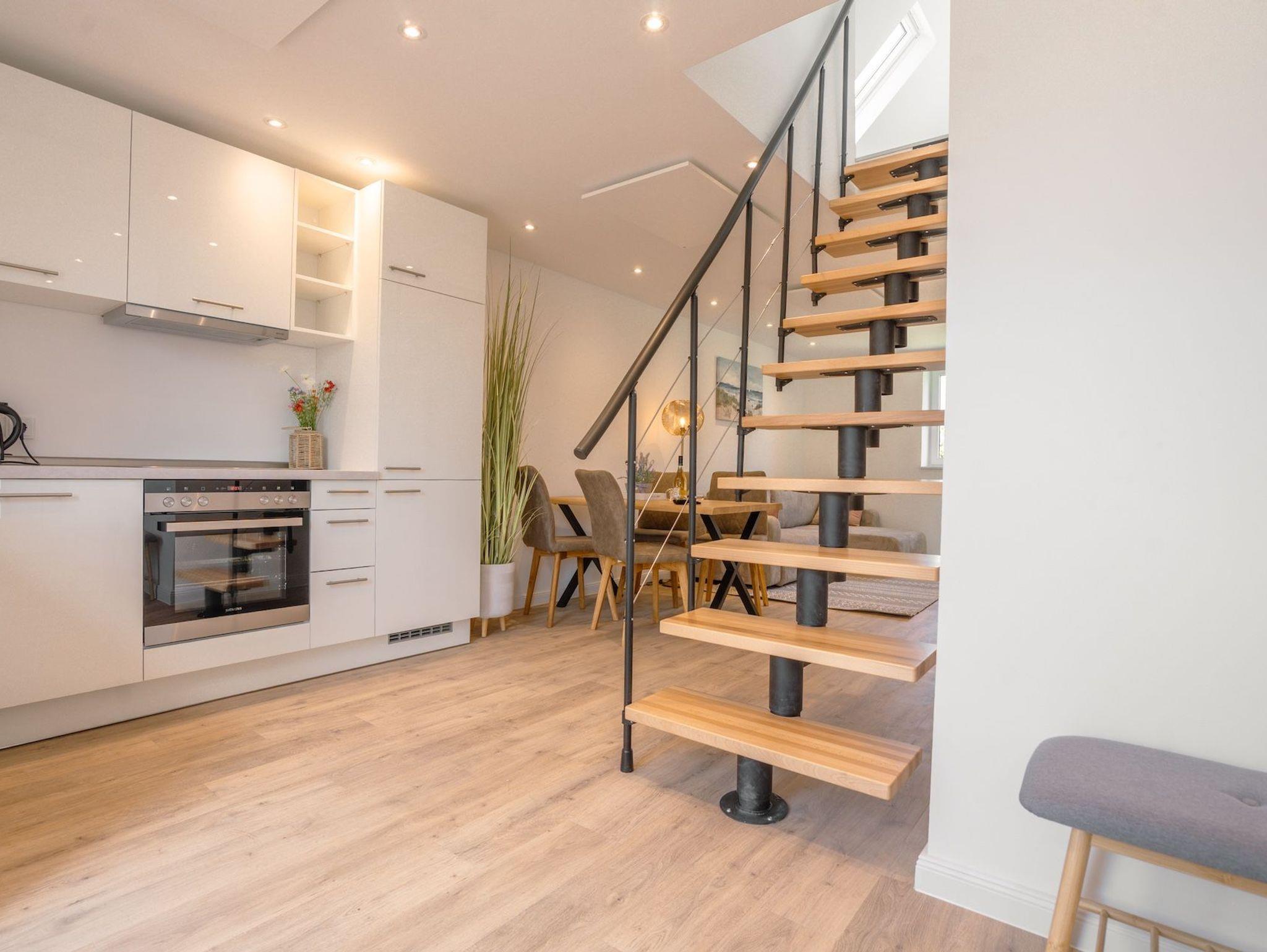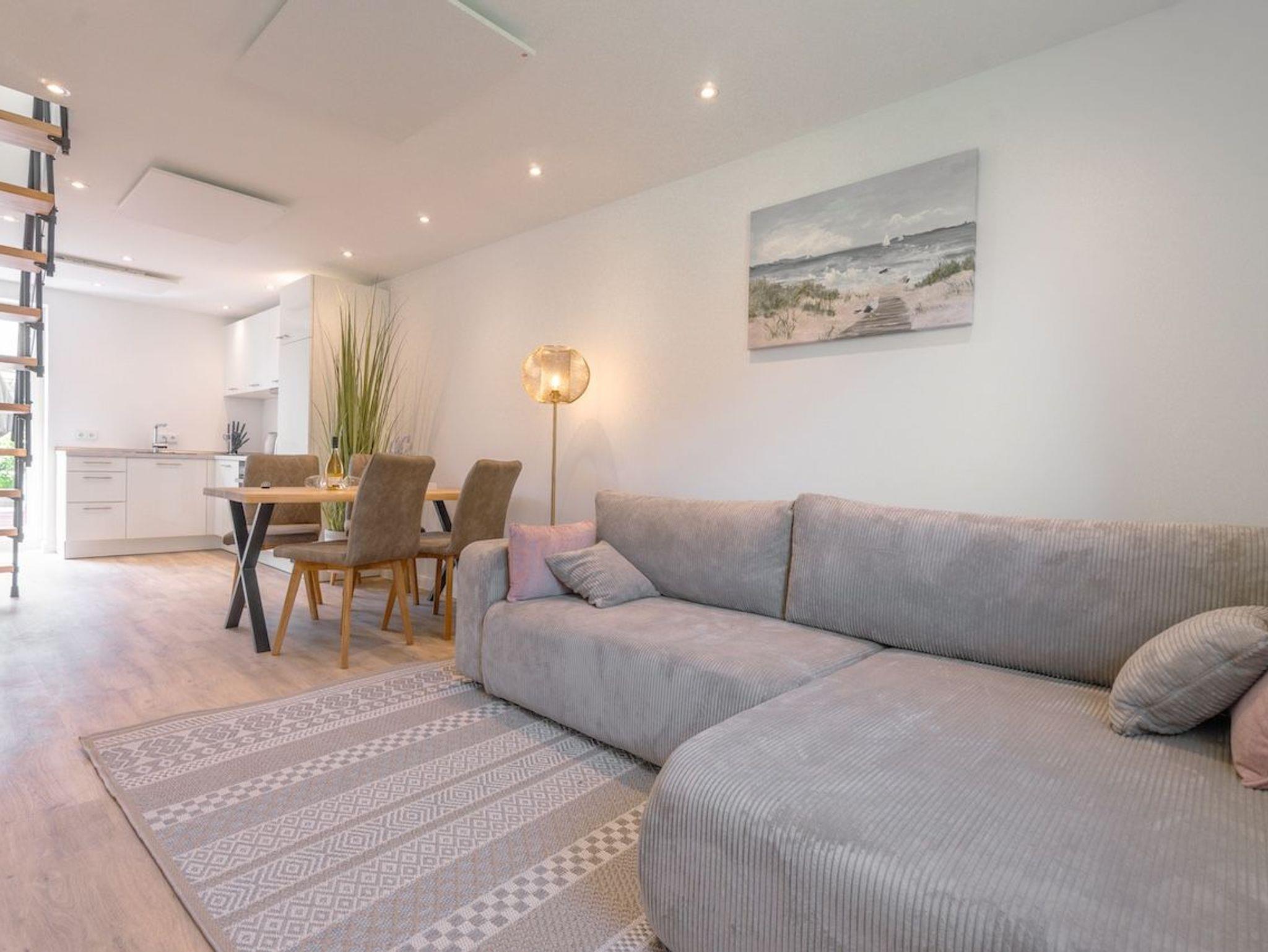 Die Küstenlodge Sternentraum bietet euch auf rund 65m² ein stilvolles, lichtdurchflutetes Zuhause auf Zeit ? perfekt für Familien oder zwei befreundete Paare. Im Erdgeschoss befindet sich ein gemütliches Schlafzimmer mit einem komfortablen Doppelbett und direktem Zugang zur Terrasse. Auf der offenen Galerieebene unter dem Dach erwartet euch ein zweites Doppelbett mit traumhaftem Ausblick ? ideal zum Sterne zählen vor dem Einschlafen. Im großzügigen Wohnbereich laden eine kuschelige Sofaecke mit ausziehbarem Doppelschlafsofa sowie ein moderner Smart-TV zum Verweilen ein. Hier finden bei Bedarf zwei weitere Gäste einen komfortablen Schlafplatz.