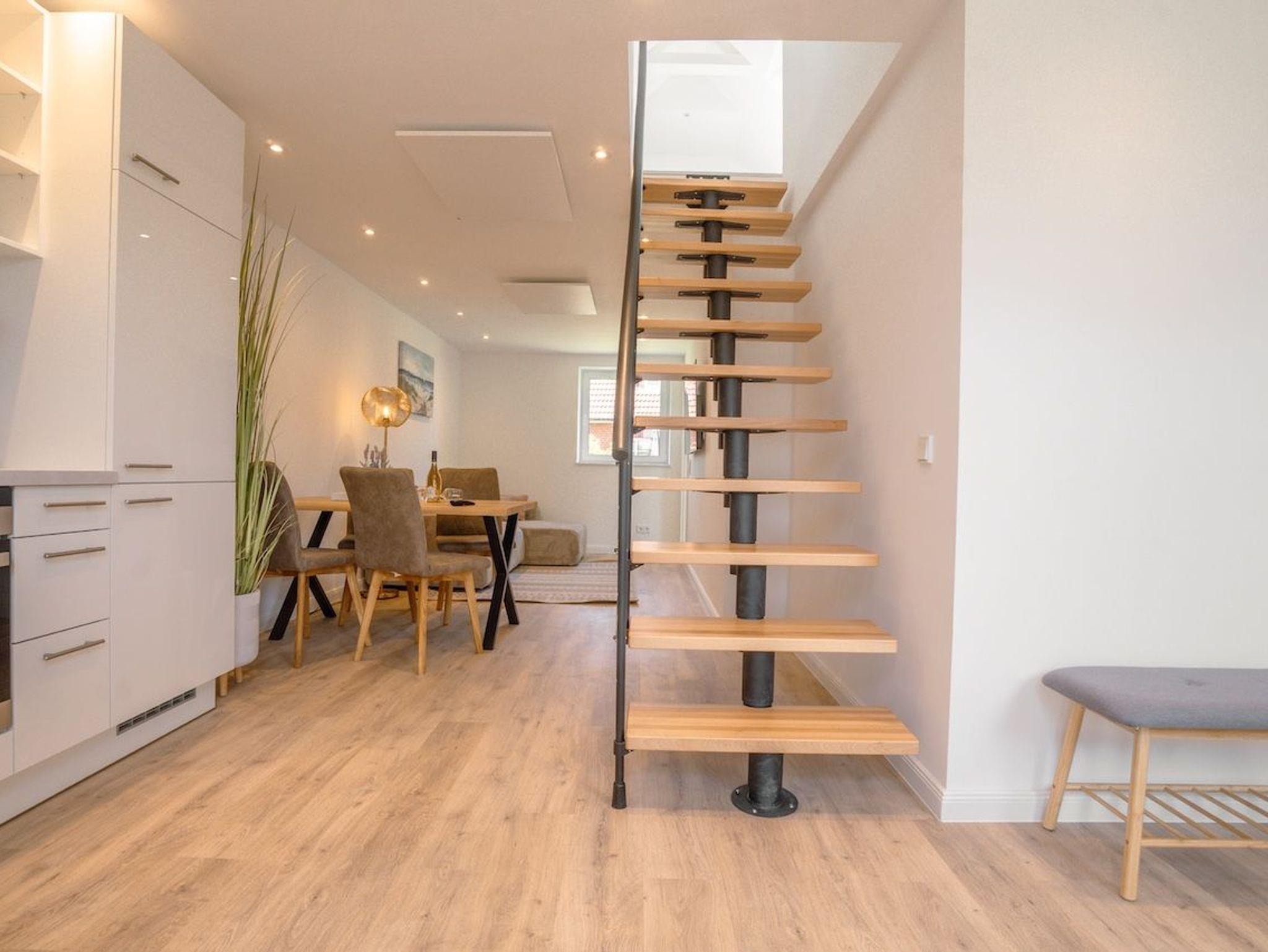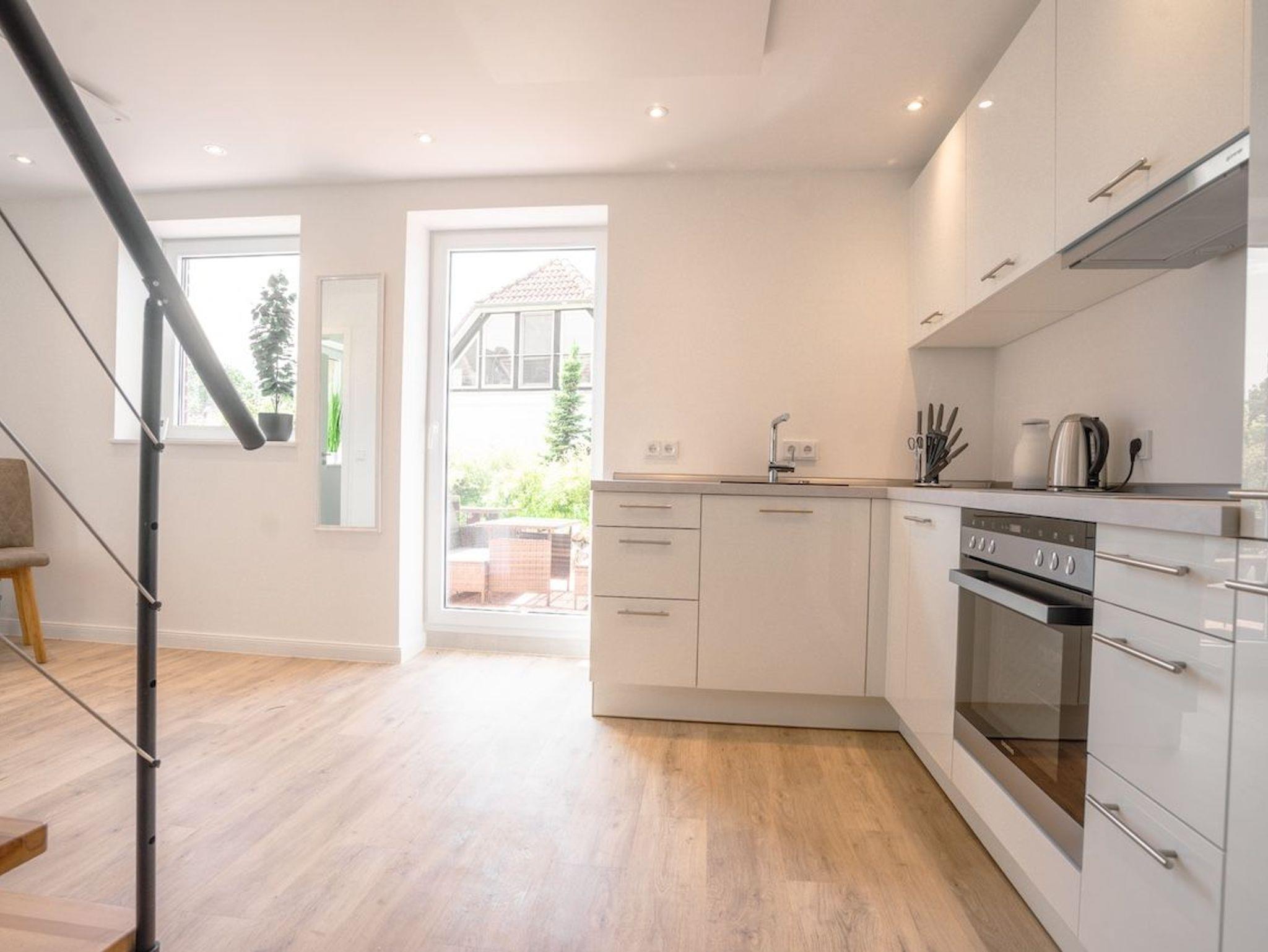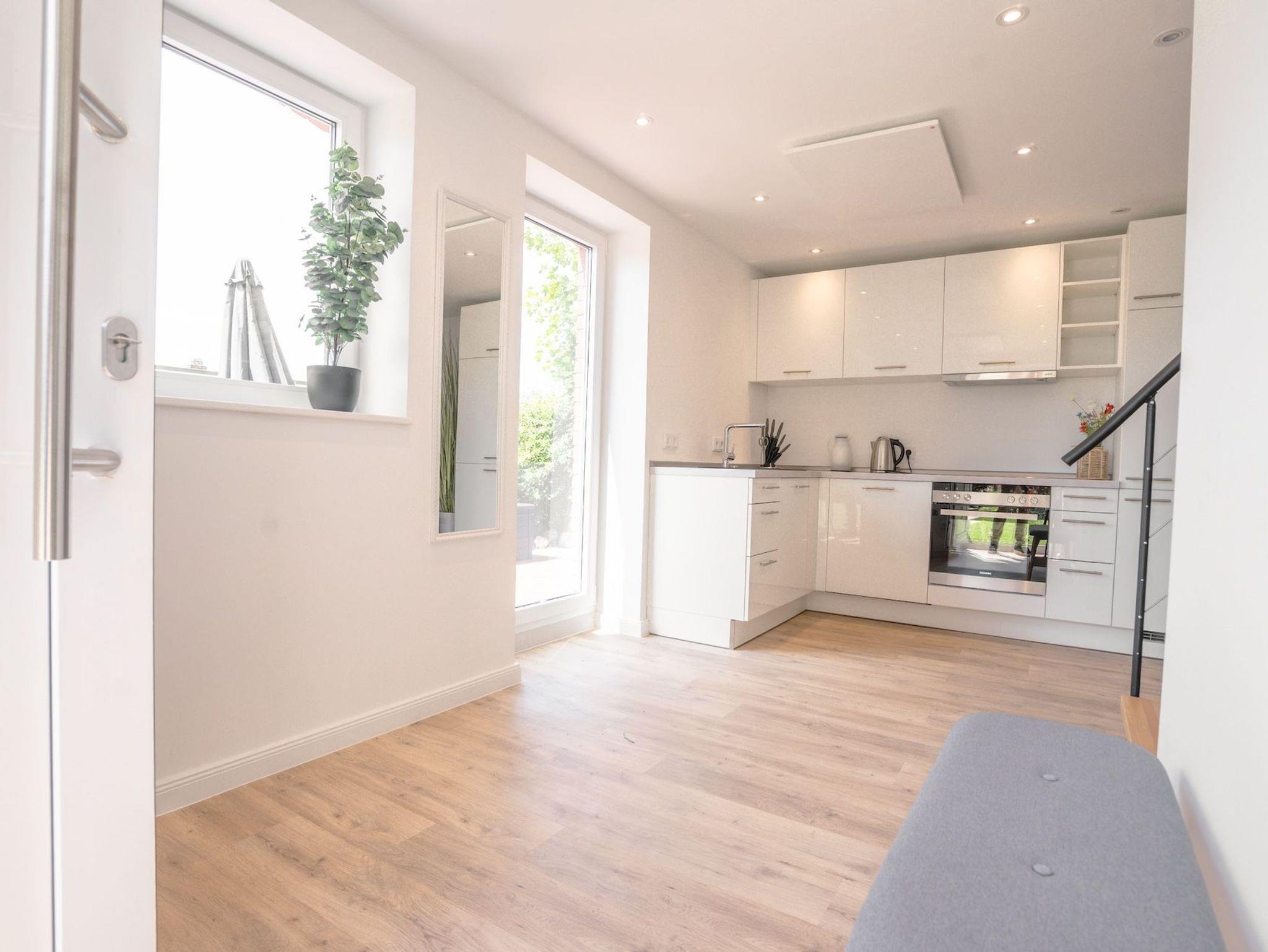Die offene Küche ist hochwertig ausgestattet und schließt direkt an den Essbereich mit großem Esstisch für bis zu sechs Personen an. Von hier aus gelangt ihr direkt auf die sonnige Südterrasse mit Gartenmöbeln und Strandkorb ? der perfekte Ort für entspannte Stunden im Grünen. Das moderne Badezimmer bietet eine ebenerdige Dusche, Tageslicht und Handtuchtrockner. Zudem stehen euch schnelles WLAN, eine Waschmaschine und ausreichend Stauraum zur Verfügung. Ein Ferienhaus zum Wohlfühlen ? durchdacht, modern und wunderbar ruhig gelegen.