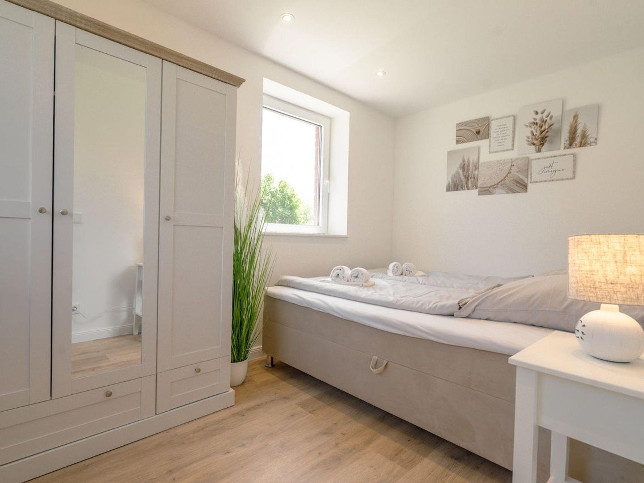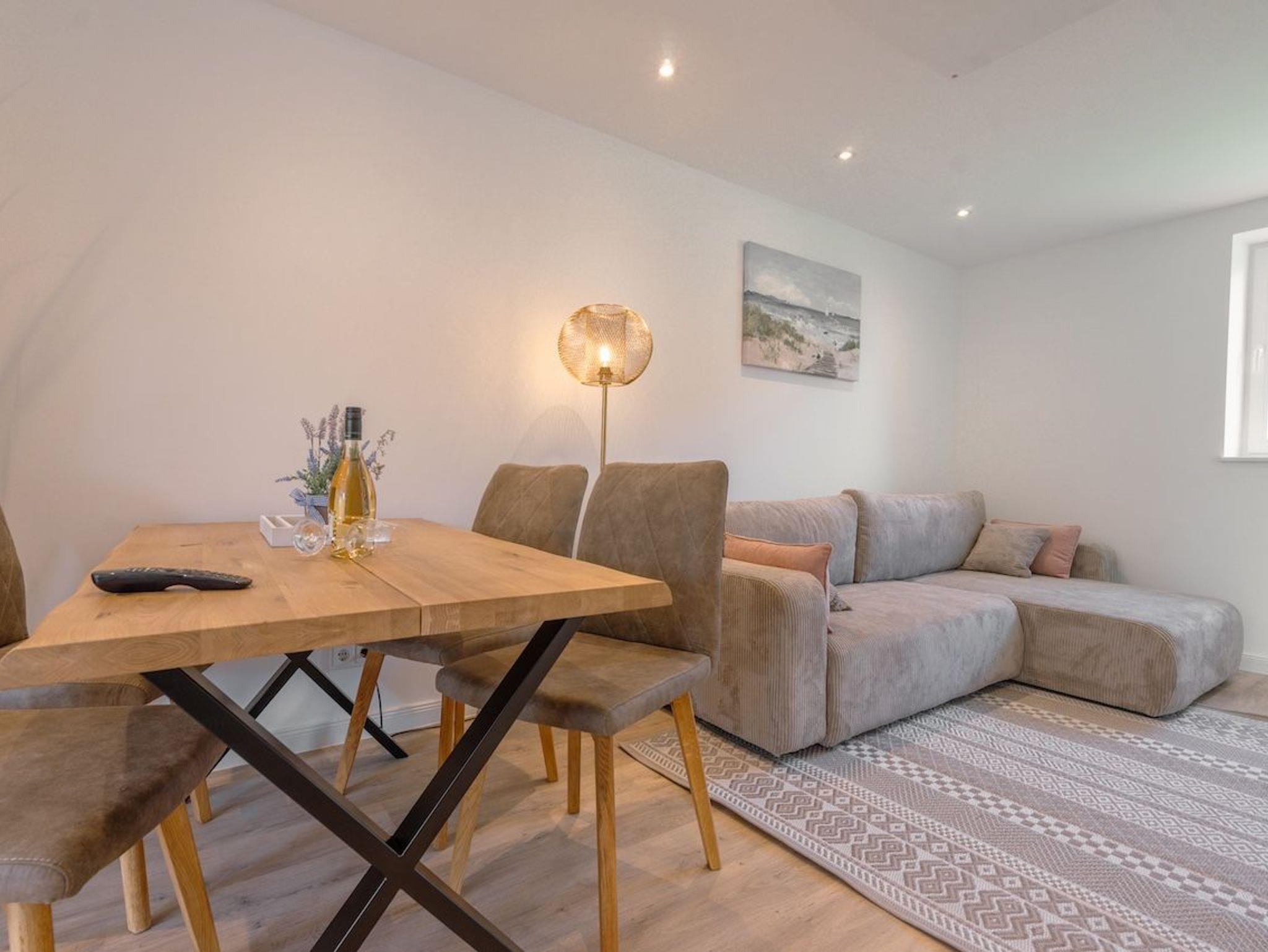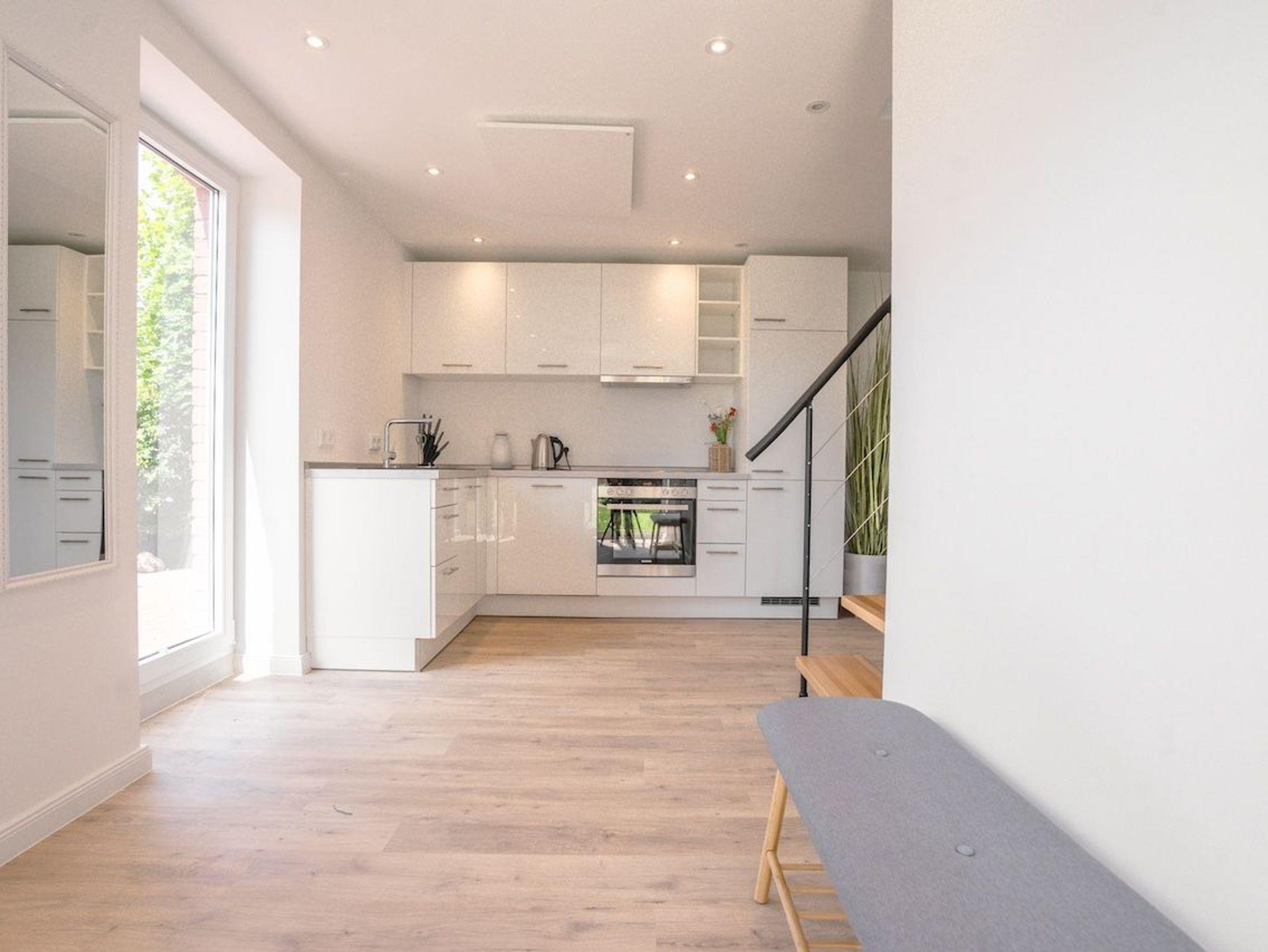 Die offene Küche ist hochwertig ausgestattet und schließt direkt an den Essbereich mit großem Esstisch für bis zu sechs Personen an. Von hier aus gelangt ihr direkt auf die sonnige Südterrasse mit Gartenmöbeln und Strandkorb ? der perfekte Ort für entspannte Stunden im Grünen. Das moderne Badezimmer bietet eine ebenerdige Dusche, Tageslicht und Handtuchtrockner. Zudem stehen euch schnelles WLAN, eine Waschmaschine und ausreichend Stauraum zur Verfügung. Ein Ferienhaus zum Wohlfühlen ? durchdacht, modern und wunderbar ruhig gelegen.