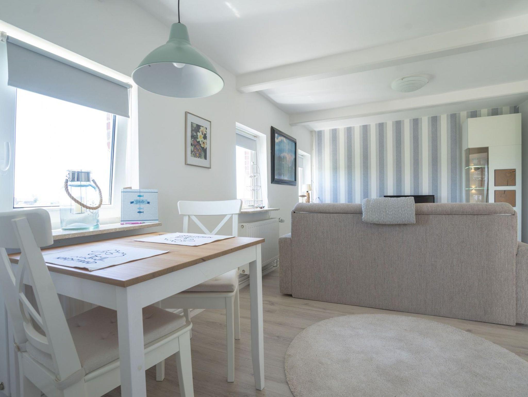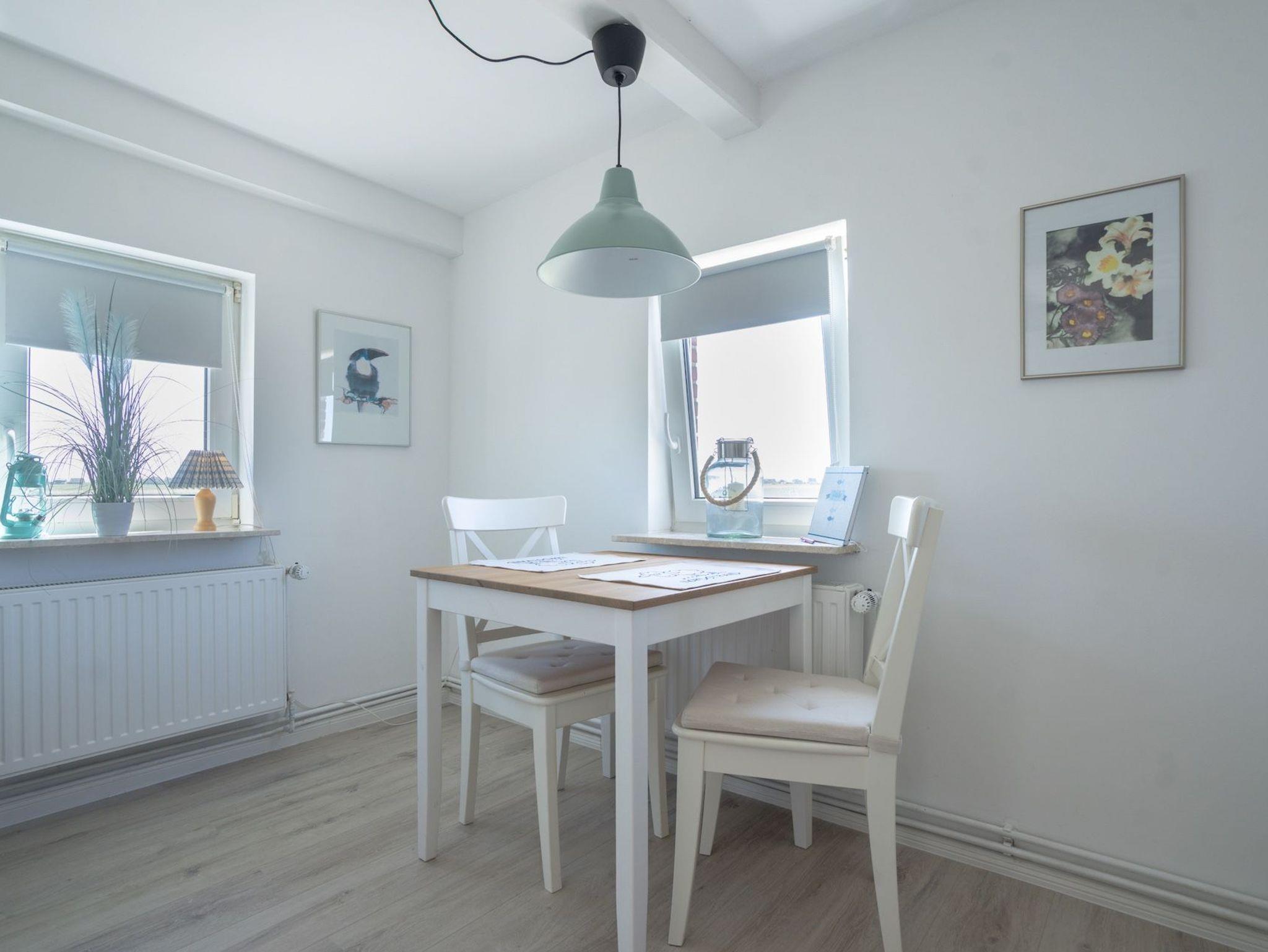 Die separate Küche bietet alles, was Sie zur Selbstversorgung brauchen. Modernes Bad, gemütlicher Essplatz und der Zugang zur eigenen Terrasse machen Lütje Knutt zu einer kleinen Wohlfühloase für zwei.