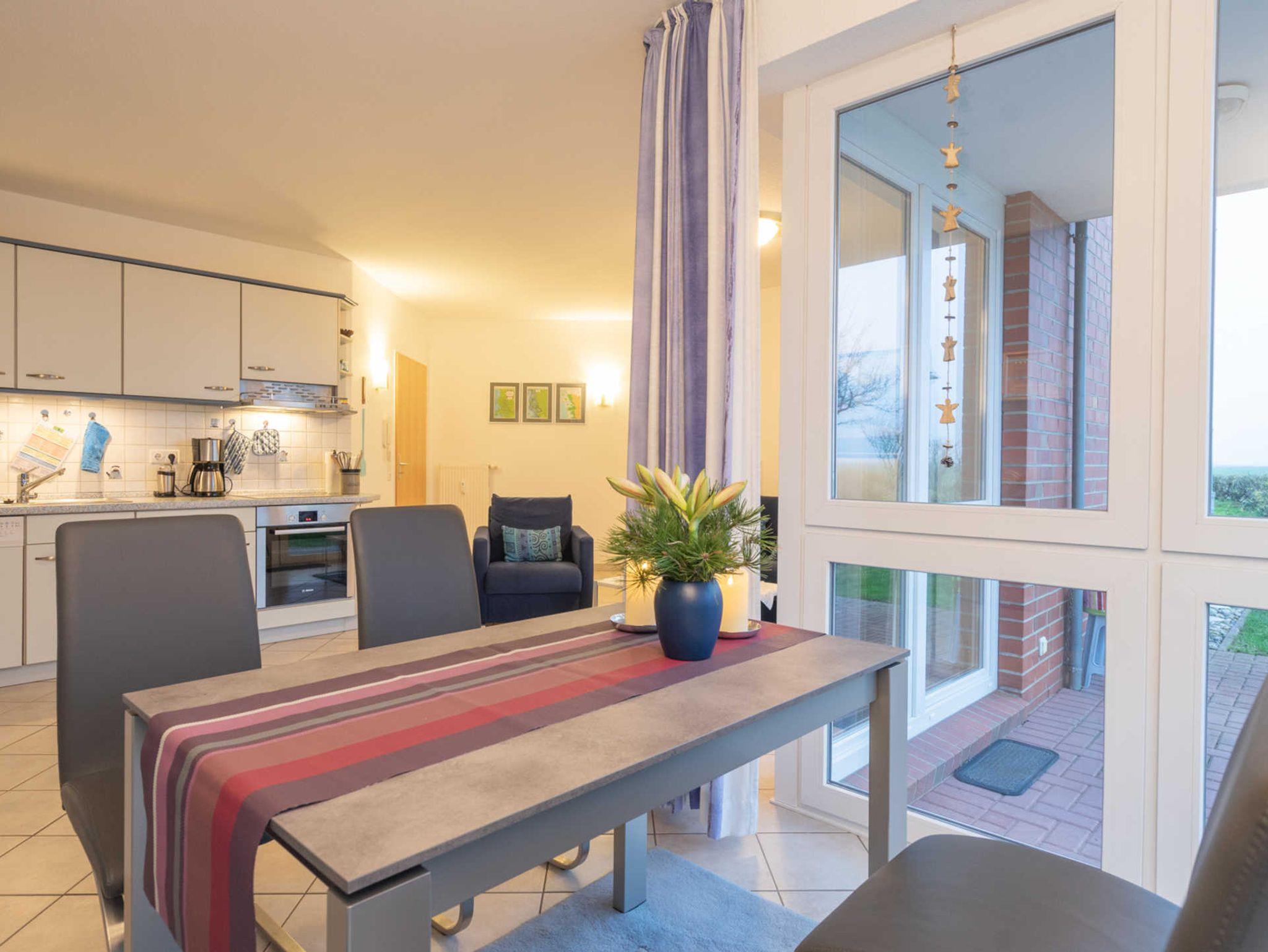 Herzlich willkommen in Ihrer neuen gemütlichen Ferienwohnung Grete im Klaar Kimming auf Nordstrand ! Hier finden Sie zu zweit auf 53 m² genügend Platz zum Entspannen. Die Ferienwohnung überzeugt durch ihr modernes Design und die offene Auslegung der Zimmer. Die offene Küchenzeile ist komplett eingerichtet, das Bad ist u.a. ausgestattet mit Waschmaschine und barrierefreier Dusche und die Schlafraunfenster sind mit Außen-Rolläden versehen.